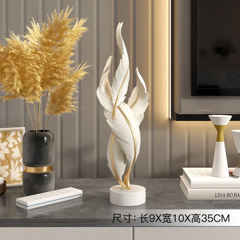 轻奢高级感装饰品羽毛艺术摆件办公室桌面办公室书架X艺术软装饰