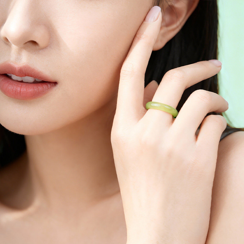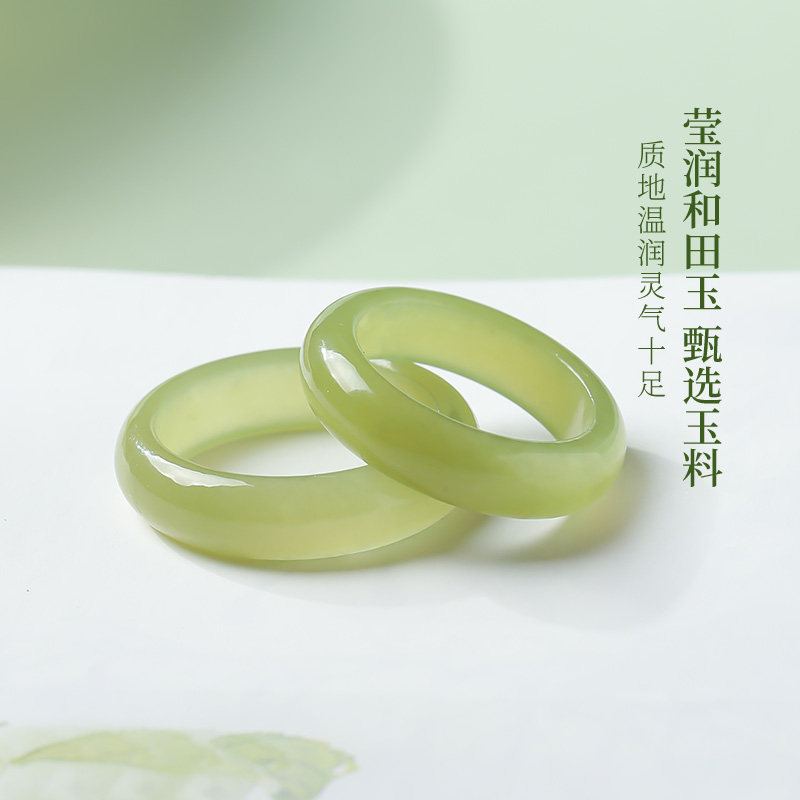 印象眸和田玉戒指黄口男女款玉指环素圈尾戒食指戒圈送圣诞礼物