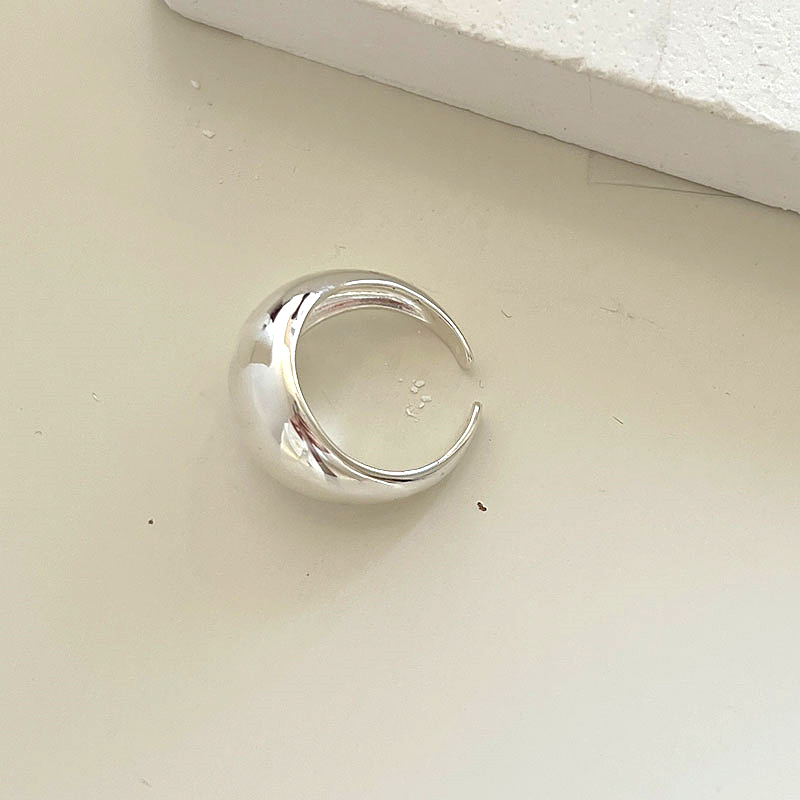 925纯银简约小众大光面椭圆开口戒指女ins重工食指环胖墩墩宽面戒