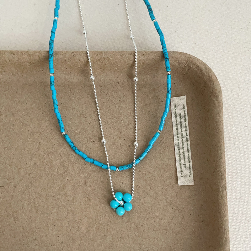 新中式蓝色叠戴串珠花朵项链女清新时尚潮流气质百搭颈链锁骨链
