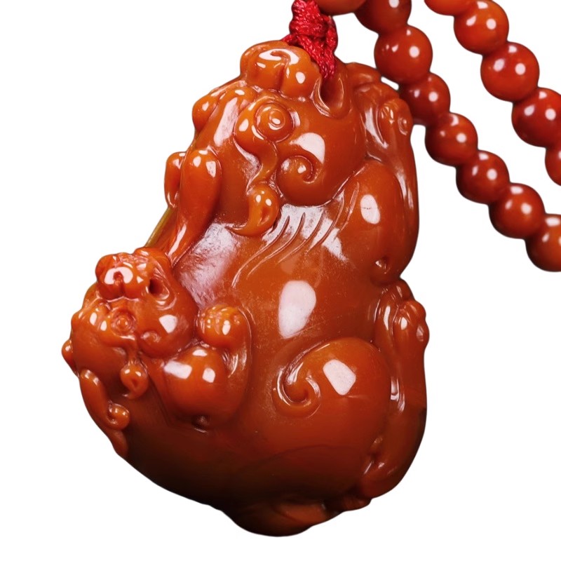 天然凉山保山南红玛瑙南红玉火焰纹貔貅金蟾仿古兽面原石吊坠挂件