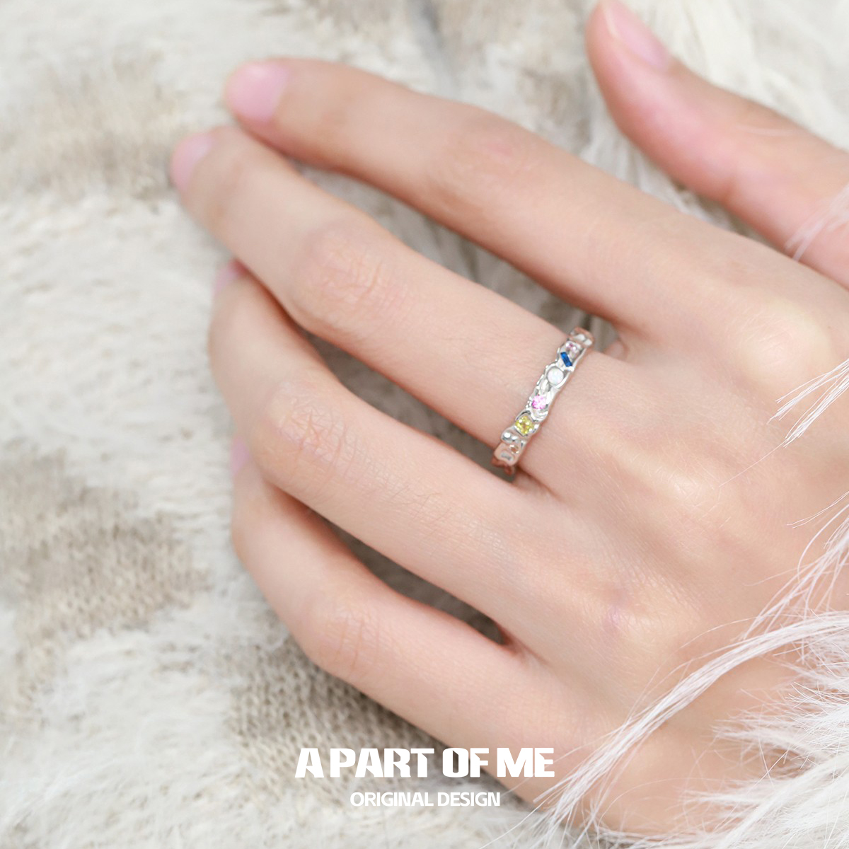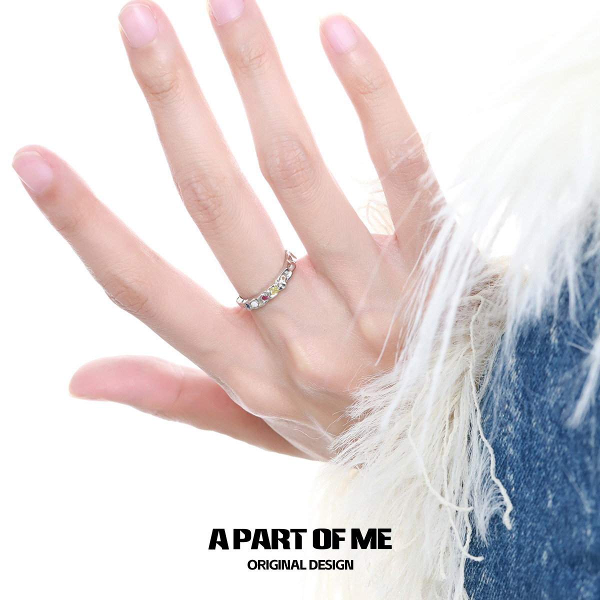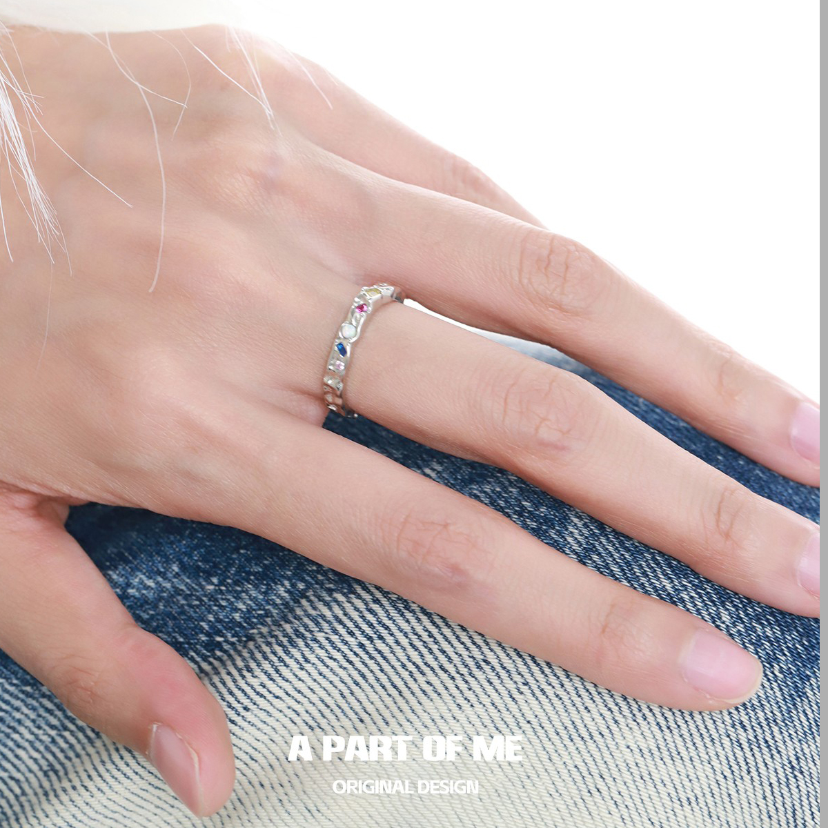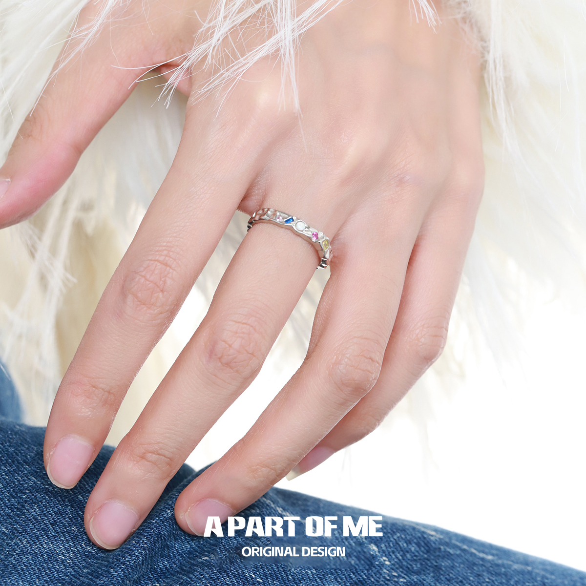 925纯银彩虹锆石细戒指开口不掉色小众高级冷淡甜酷食指戒指ins风