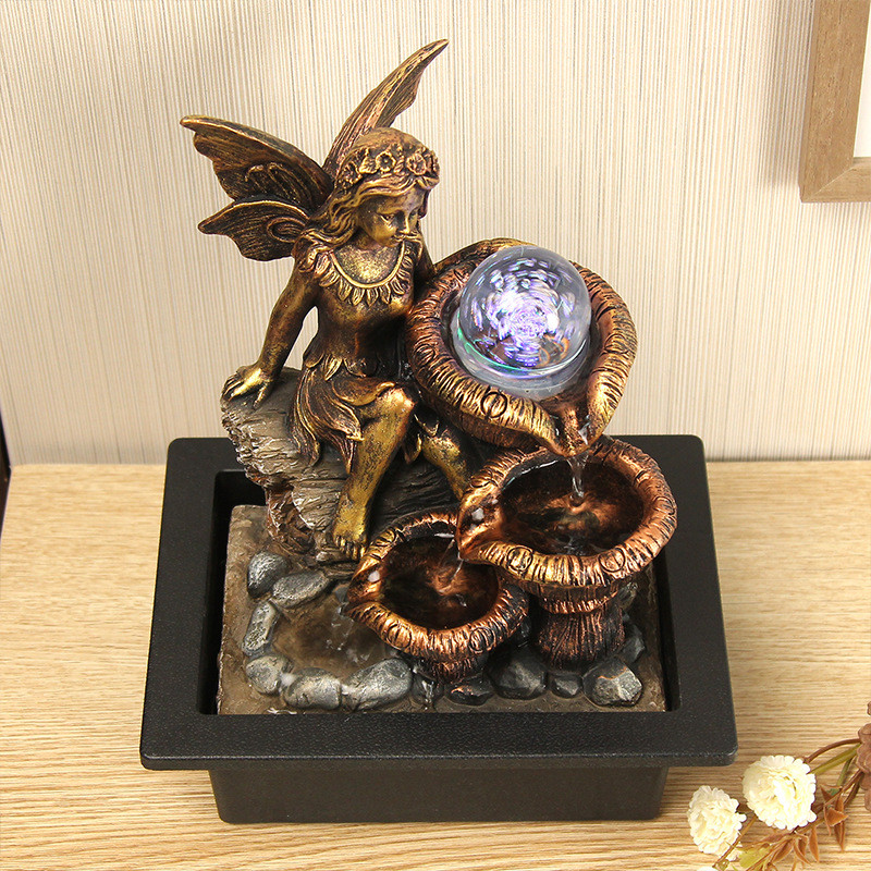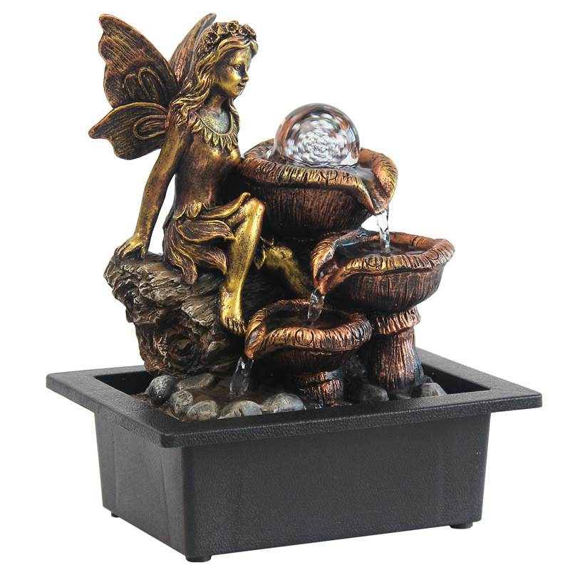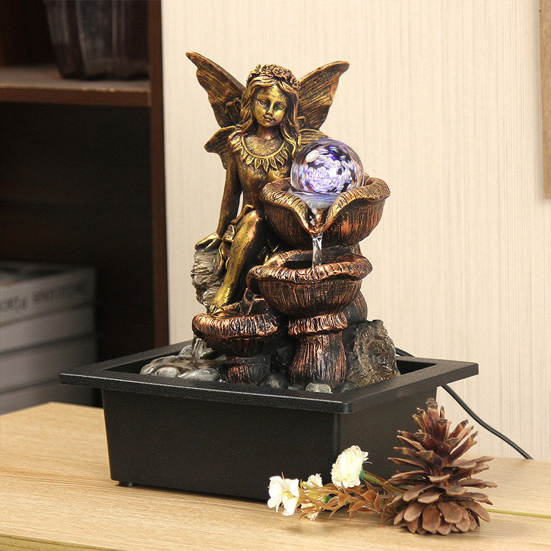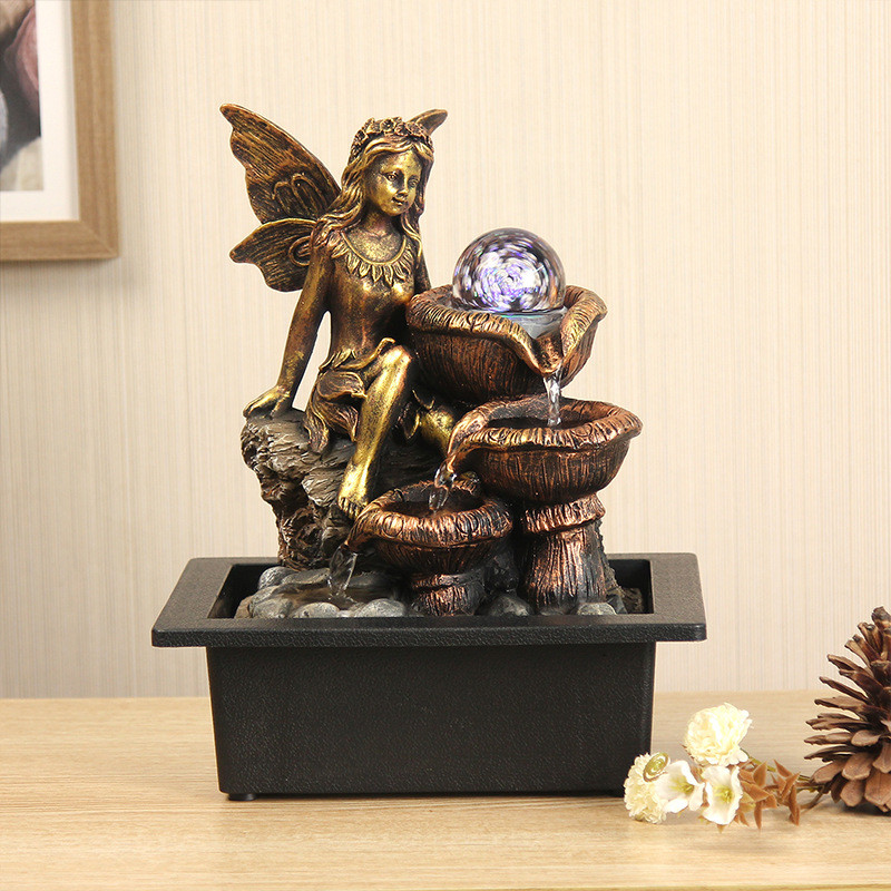 新款循环室内客厅书房桌面电视柜办公带球流水摆件树脂工艺品