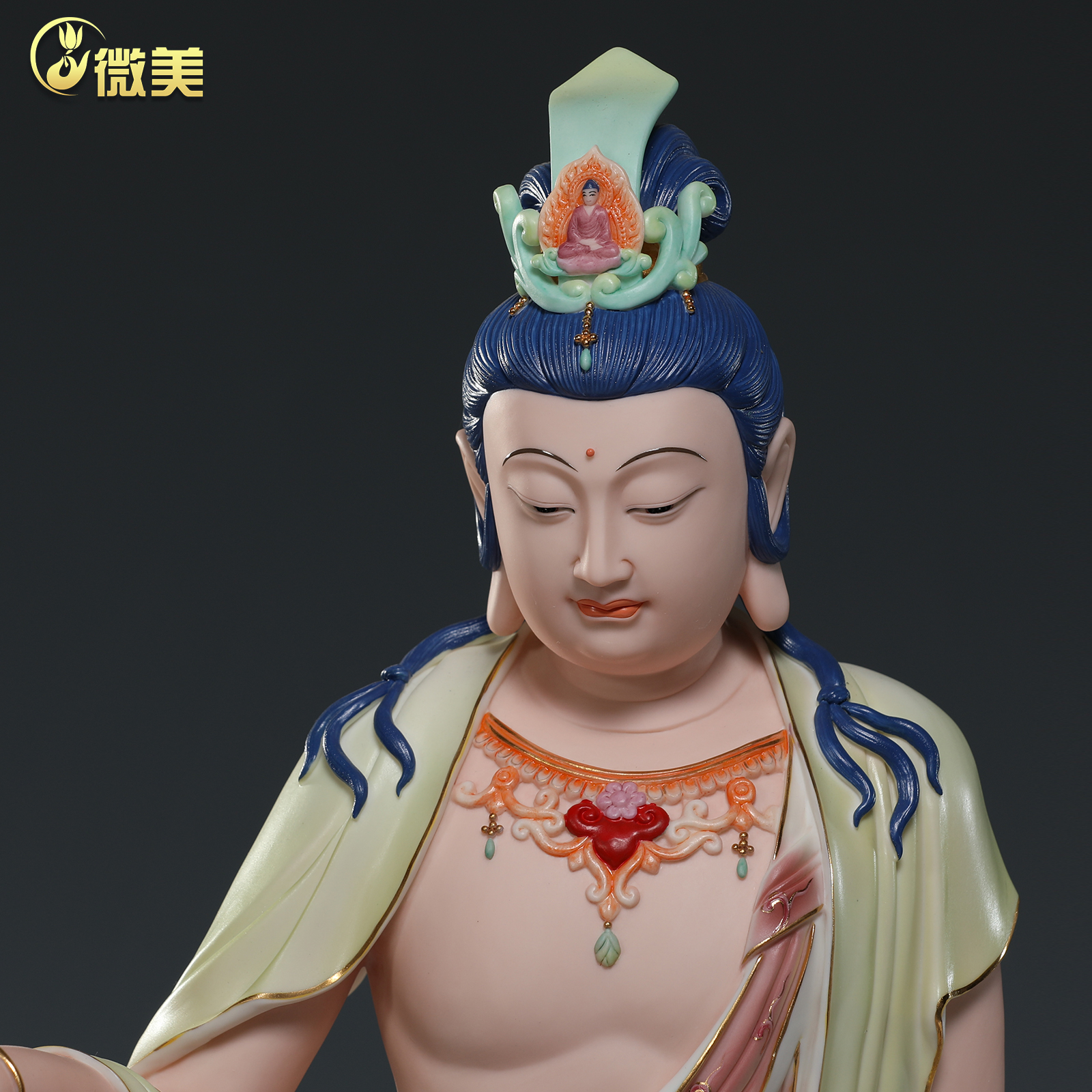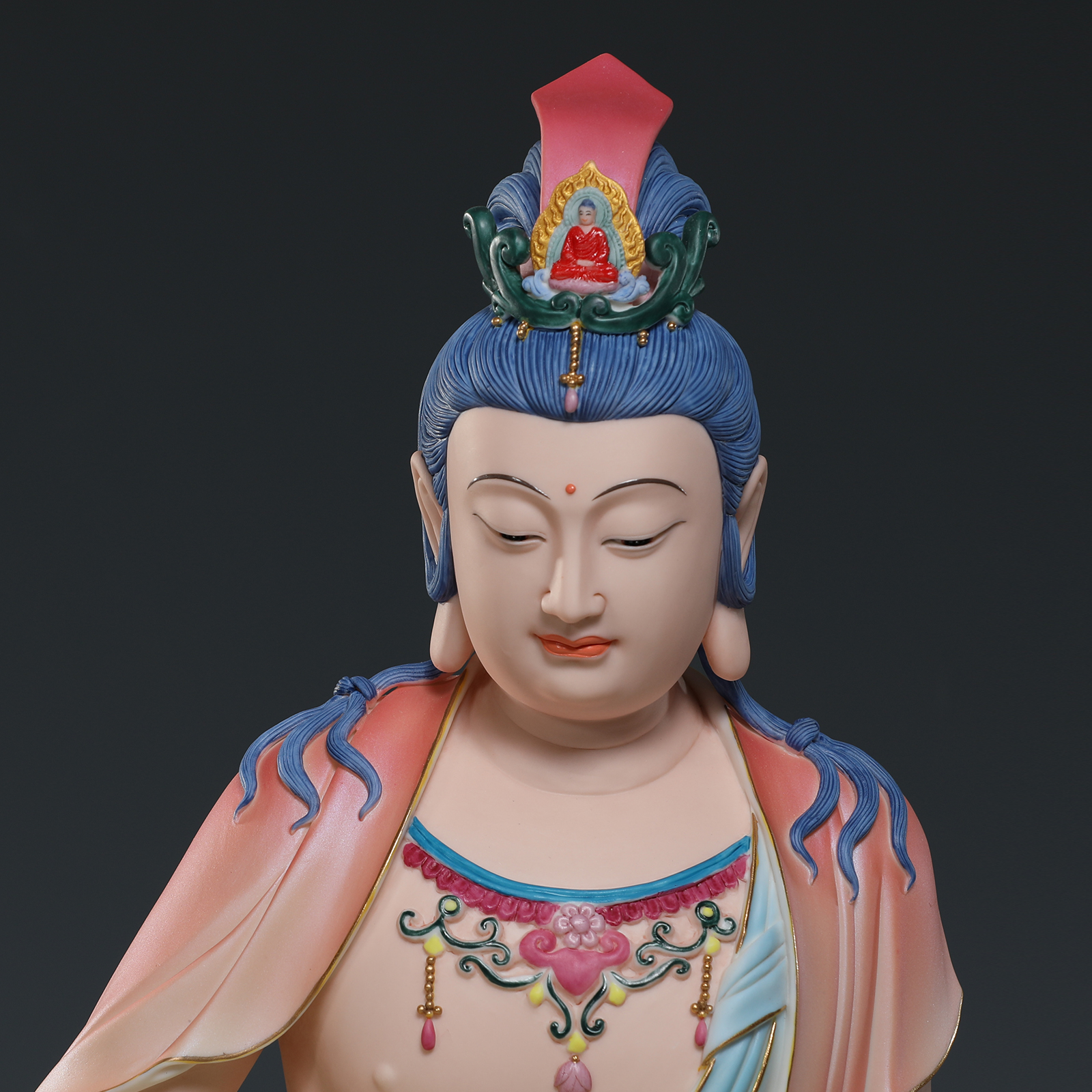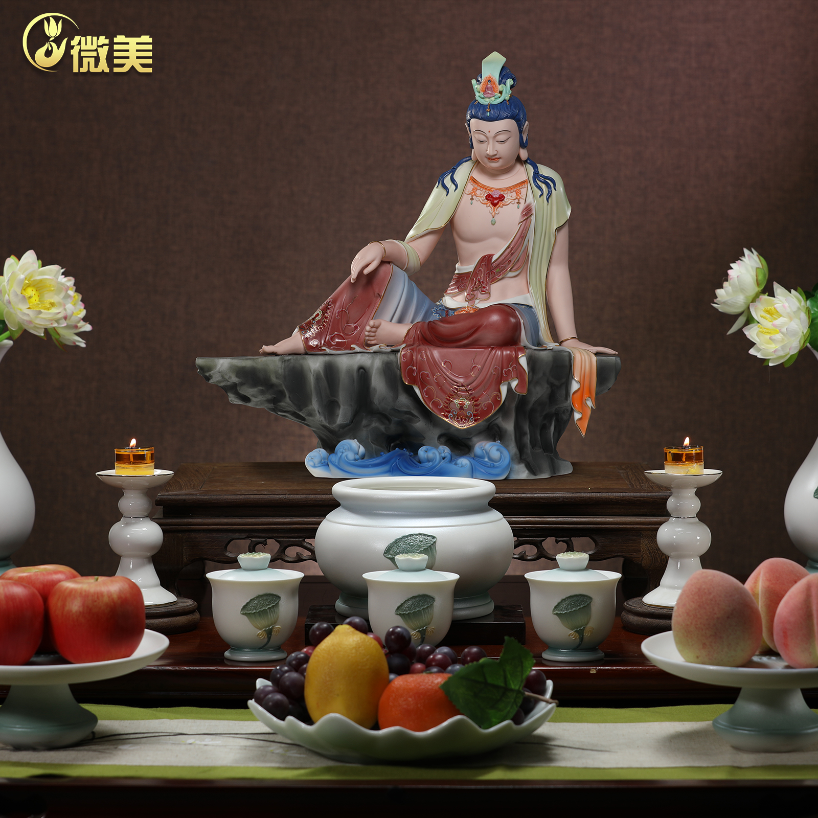 微美21寸坐岩静思观音佛像禅意自在观音像摆设玄关艺术品陶瓷摆件