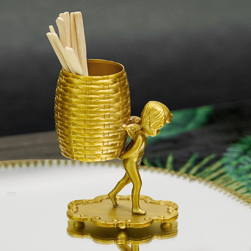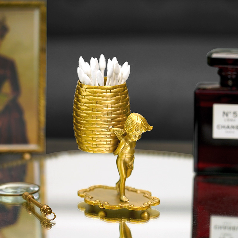 黄铜天使背篓家居装饰收纳摆件 水果刀叉收纳 棉签牙签桶轻奢精致