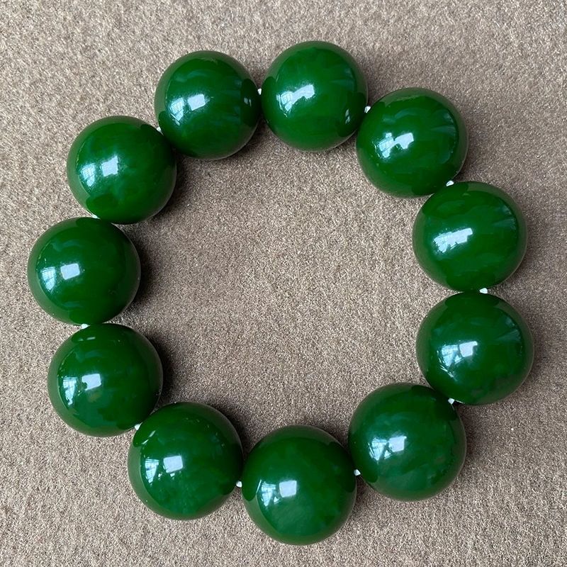 新疆和田玉碧玉圆珠手串20mm男女款路路通转运珠菠菜绿玉石器手链
