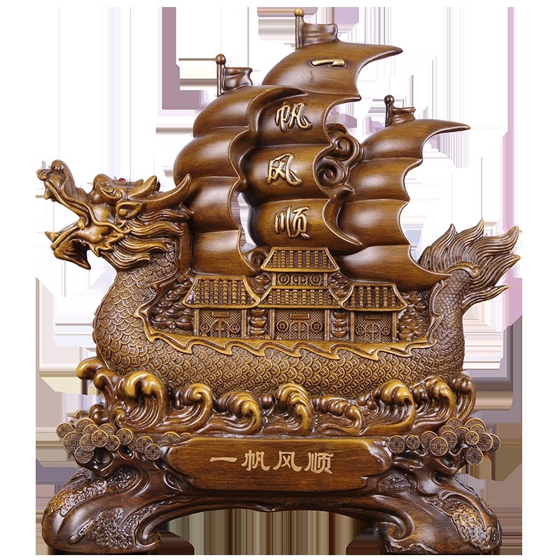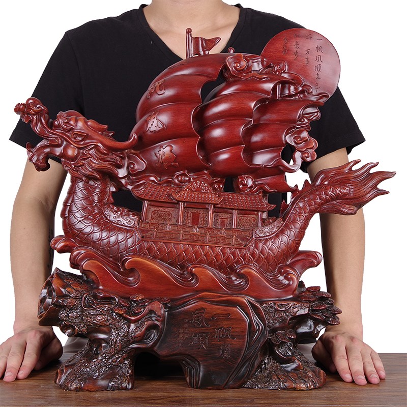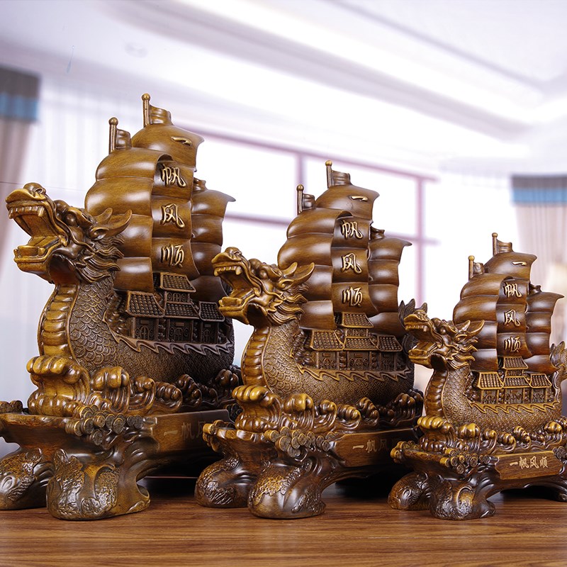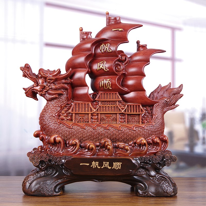 一帆风顺帆船龙船摆m件大号招财客厅公司办公室老板桌仿木制工艺