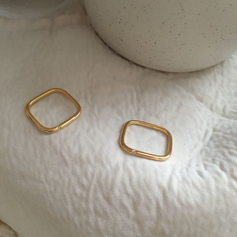 小众轻奢时尚设计感方形戒指钛钢14K金镶钻百搭ins潮素圈方戒尾戒