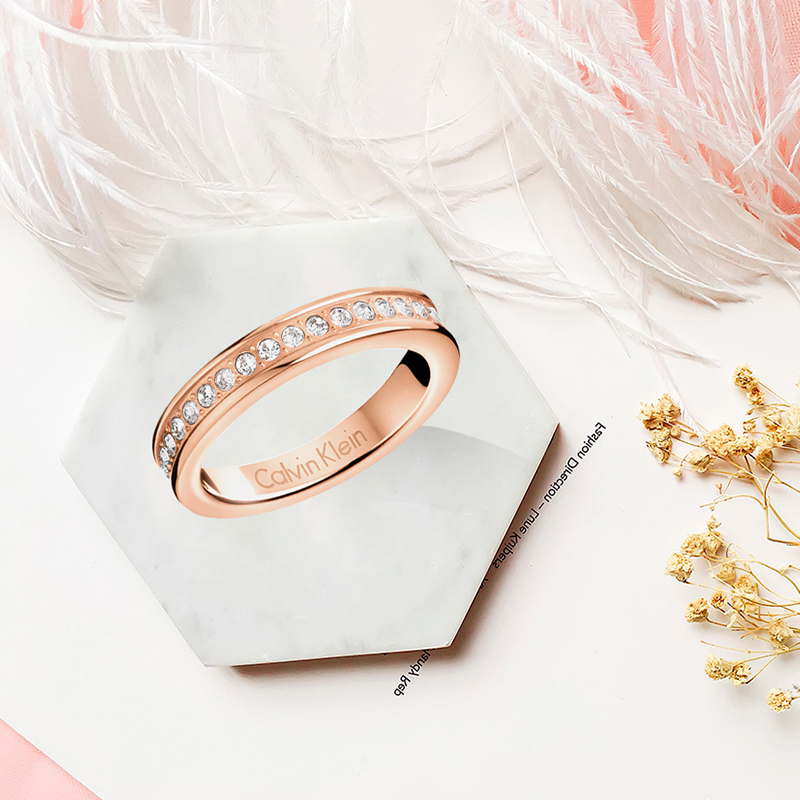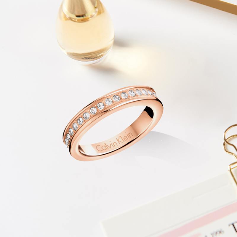 Calvin Klein瑞士进口满天星情侣款镶钻戒指玫瑰金色银色镀金合金