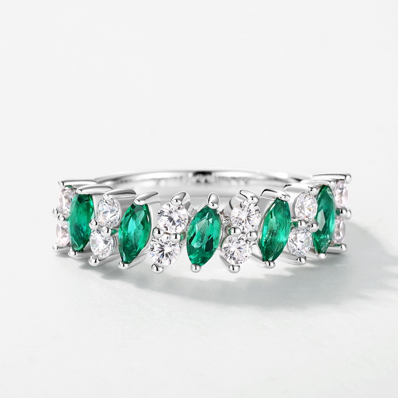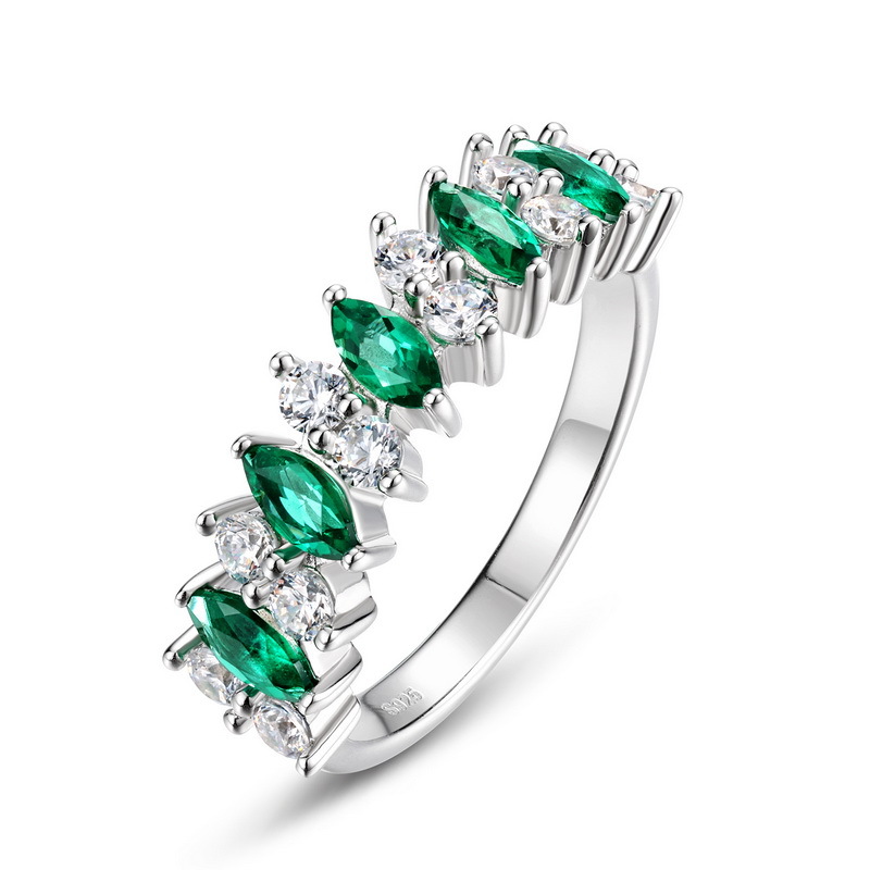 轻奢精致马眼培育祖母绿戒指S925银镀18K金PT950铂金食指戒简约