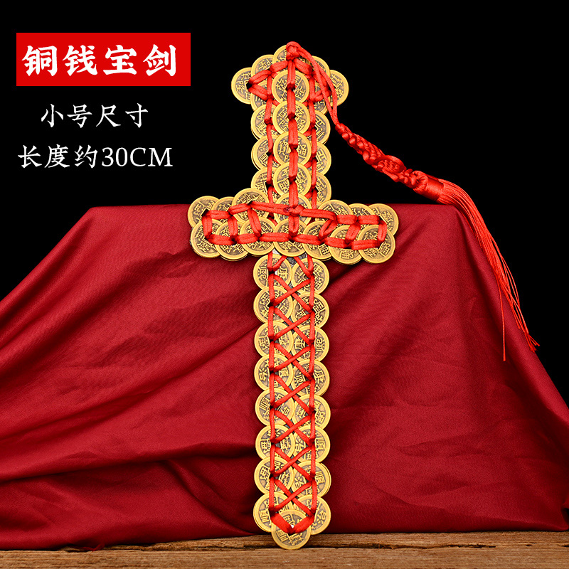寅亥堂手工绳子编织铜钱宝剑保真仿古币家居装饰吉祥物挂件门客厅