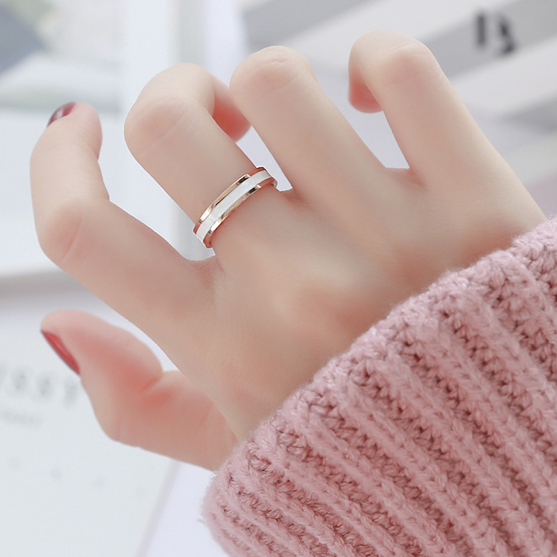 时尚玫瑰金窄版网红黑白陶瓷戒指 男女情侣指环S对戒尾戒食指饰品