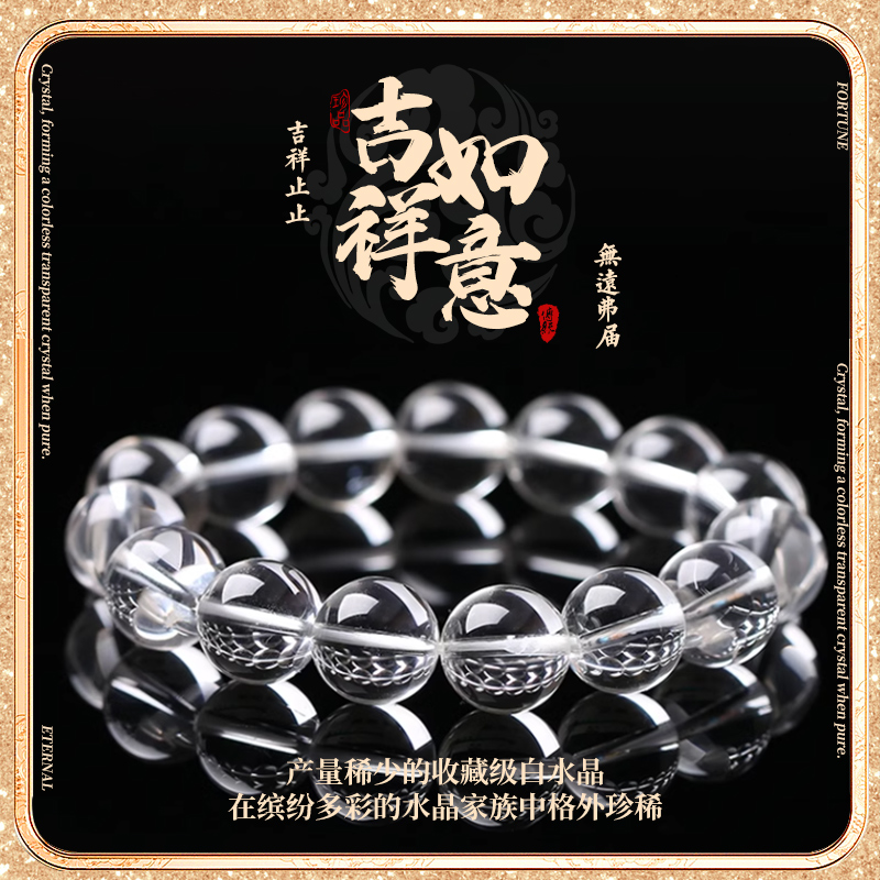收藏级巴西天然白水晶手串正品男女款全净体白色水晶手链生日礼物