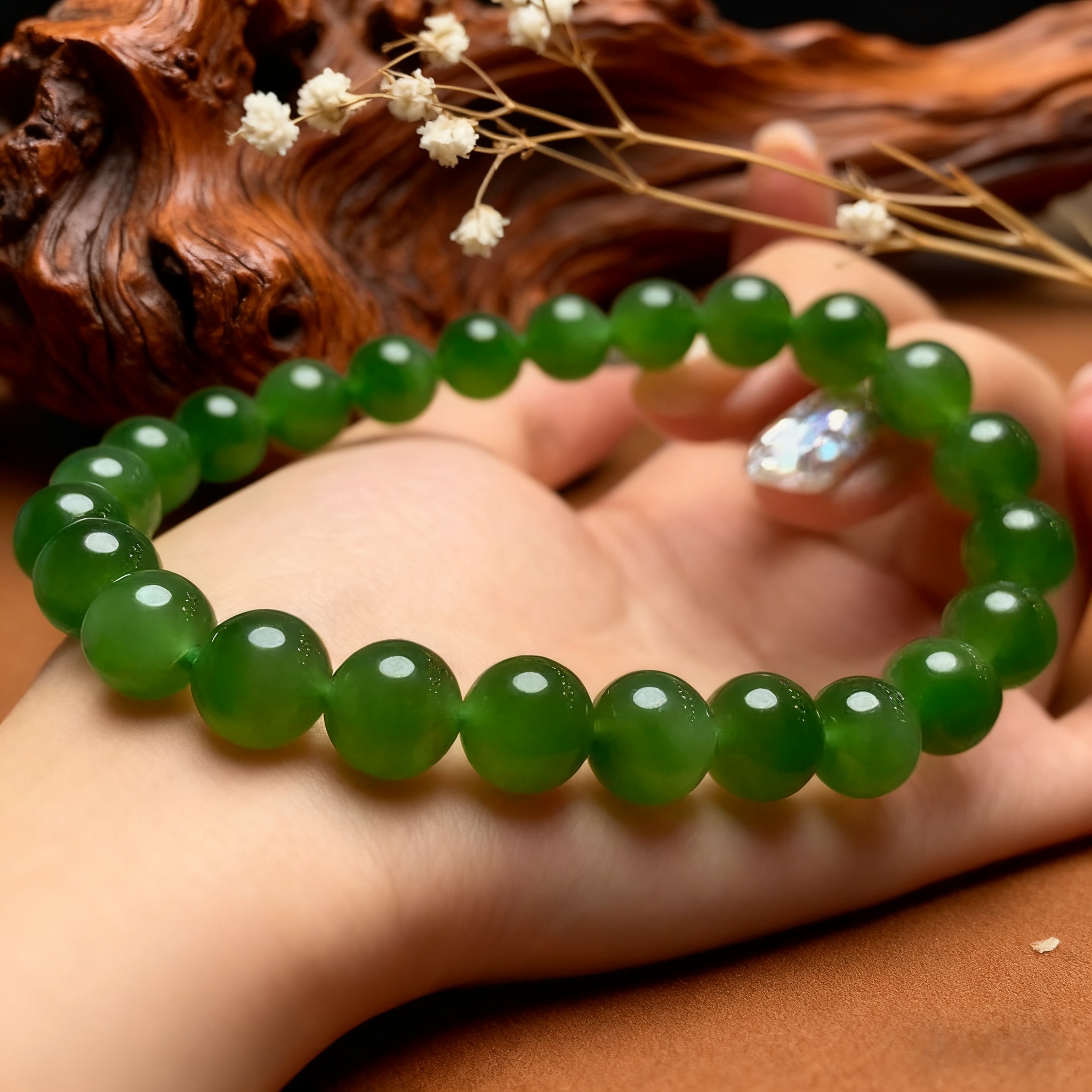 正品碧玉手串8mm女款阳绿碧玉手链单圈天然玉石珠子和田玉手链串