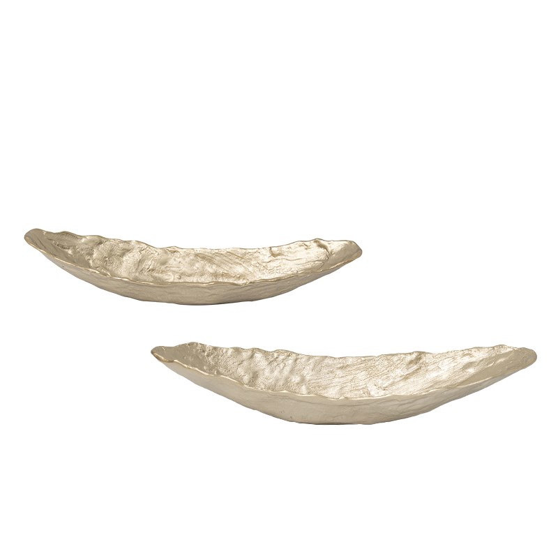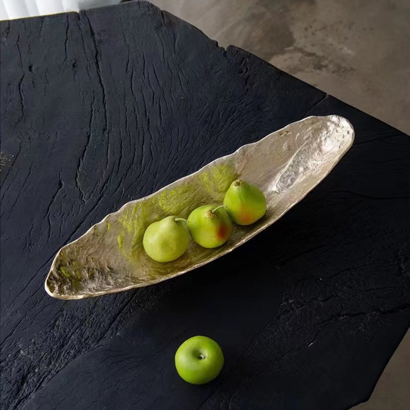 进口铝制长条船型大果盘托盘摆件现代样板间花盆花器客厅玄关装饰
