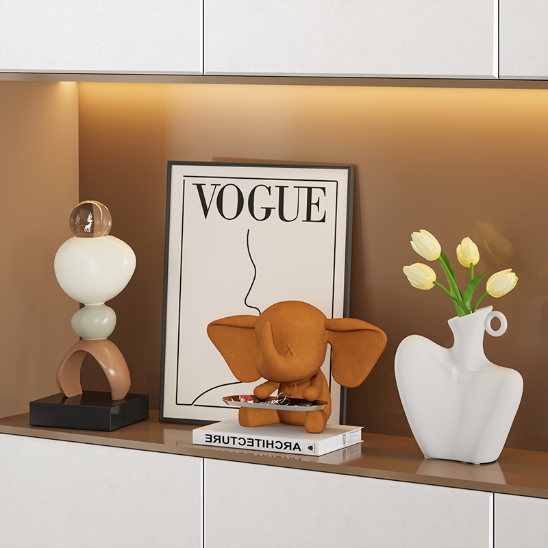 轻奢客厅入户鞋柜玄关摆件家居钥匙收纳小飞象托盘装饰高级感