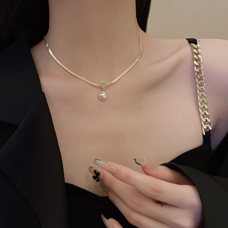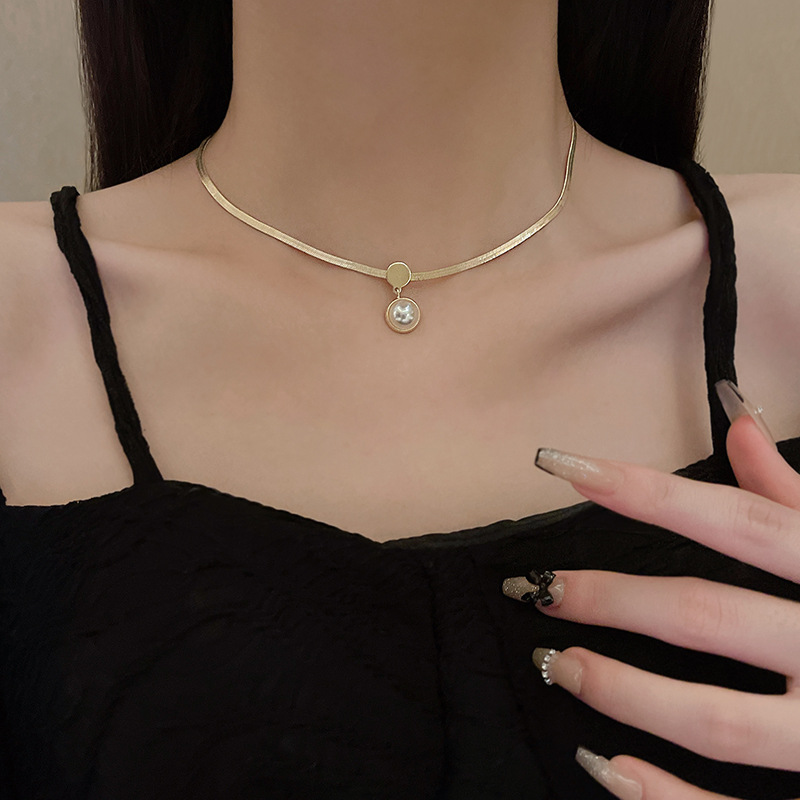 2024ins冷淡风蛇骨链锁骨链潮珍珠吊坠小众设计感项链女百搭颈炼