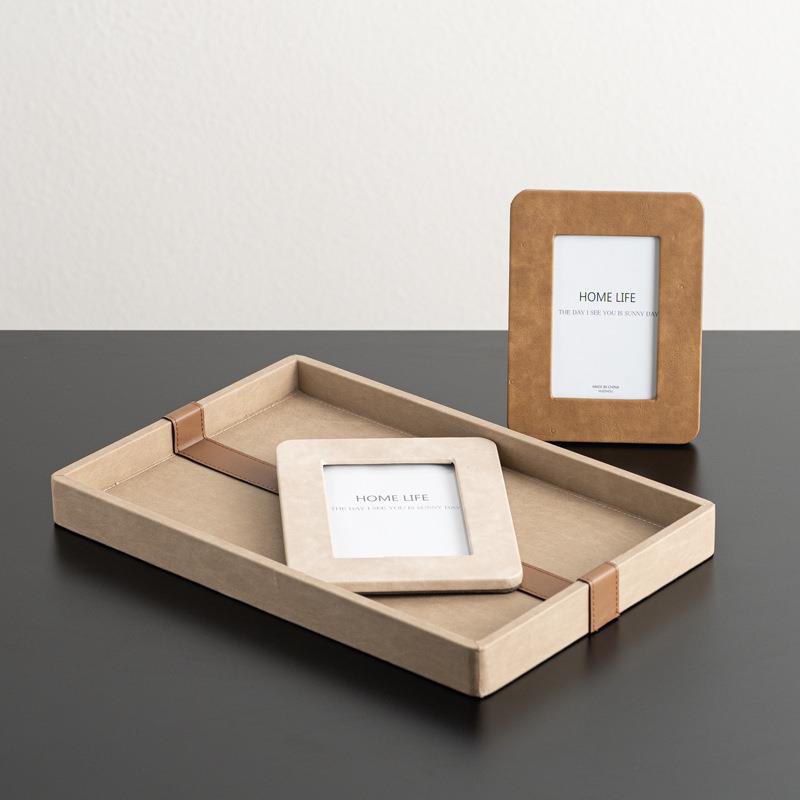 艺贝子高级感轻奢软装搭配样板房卧室床头柜飘窗相框托盘装饰摆件