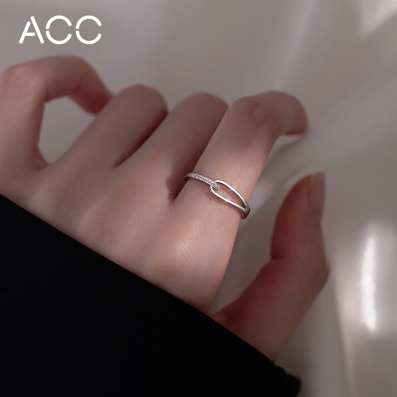 ACC素圈自律戒指女925纯银尾戒时尚个性食指戒指环小众设计开口戒