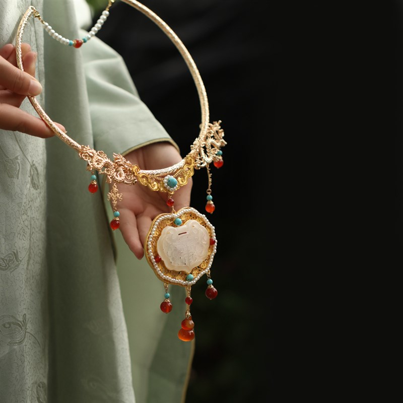 金玉良缘 璎珞项圈平安锁吊坠唐风富贵百搭中式复古明清 汉服新娘