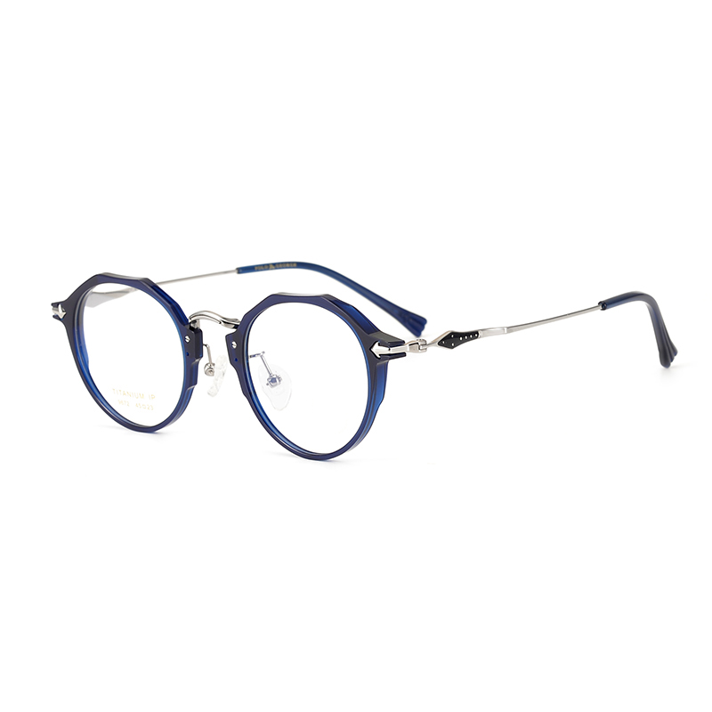 日本极简风格 高质感蓝银色板材眼镜框 纯钛超轻镜架 百搭男女款