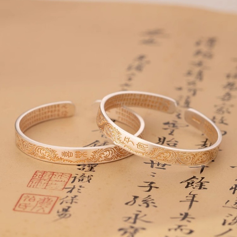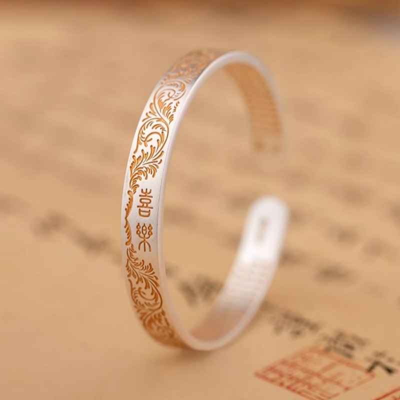 S925纯银平安喜乐手镯女2024年新款爆款首饰高级感送妈妈礼物复古