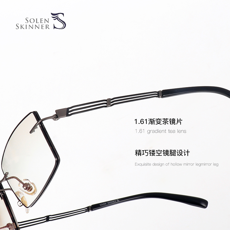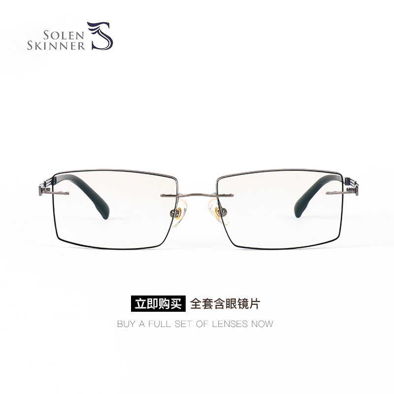 魅影眼镜 夏琅无框近视眼镜男士切边商务款方形渐变色眼睛潮X4207