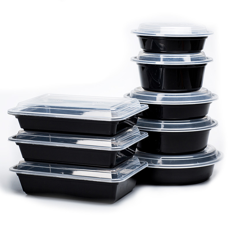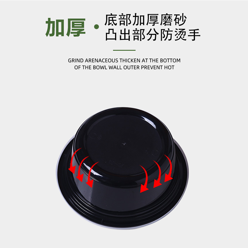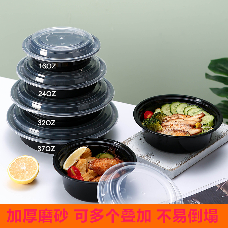 美式出口圆形一次性餐盒外卖快餐打包盒塑料便当饭盒加厚磨砂黑色