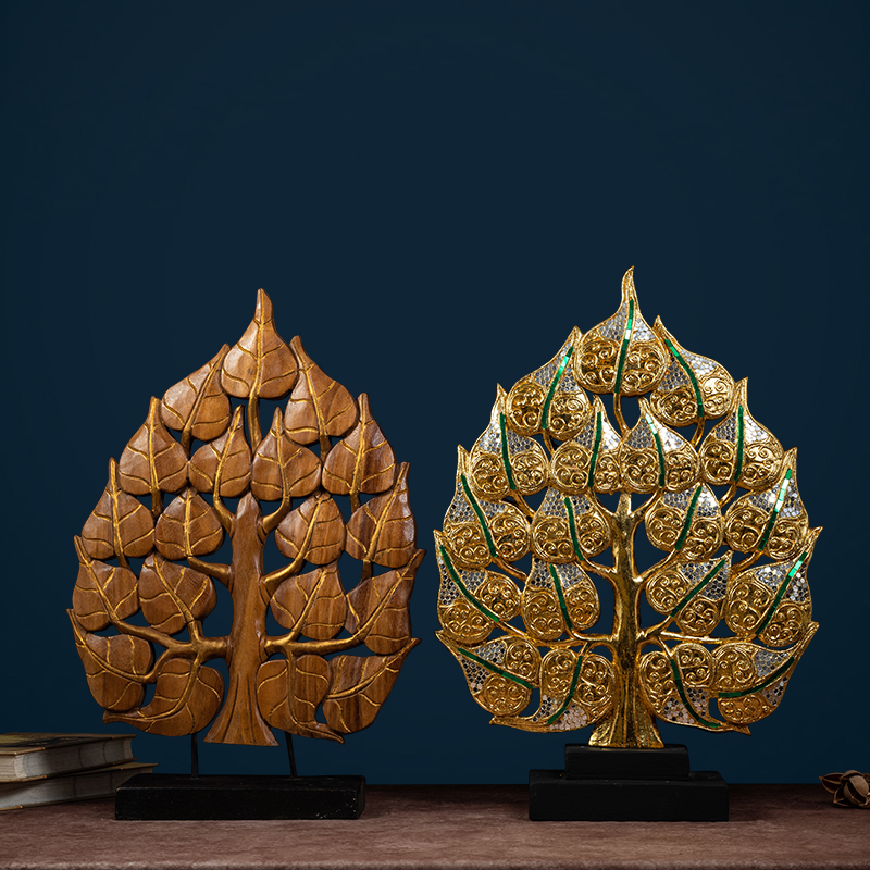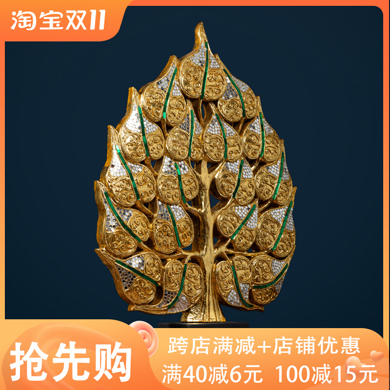 极速泰国实木雕刻菩提摆件东南亚风格家J居玄关装饰桌面电视柜禅