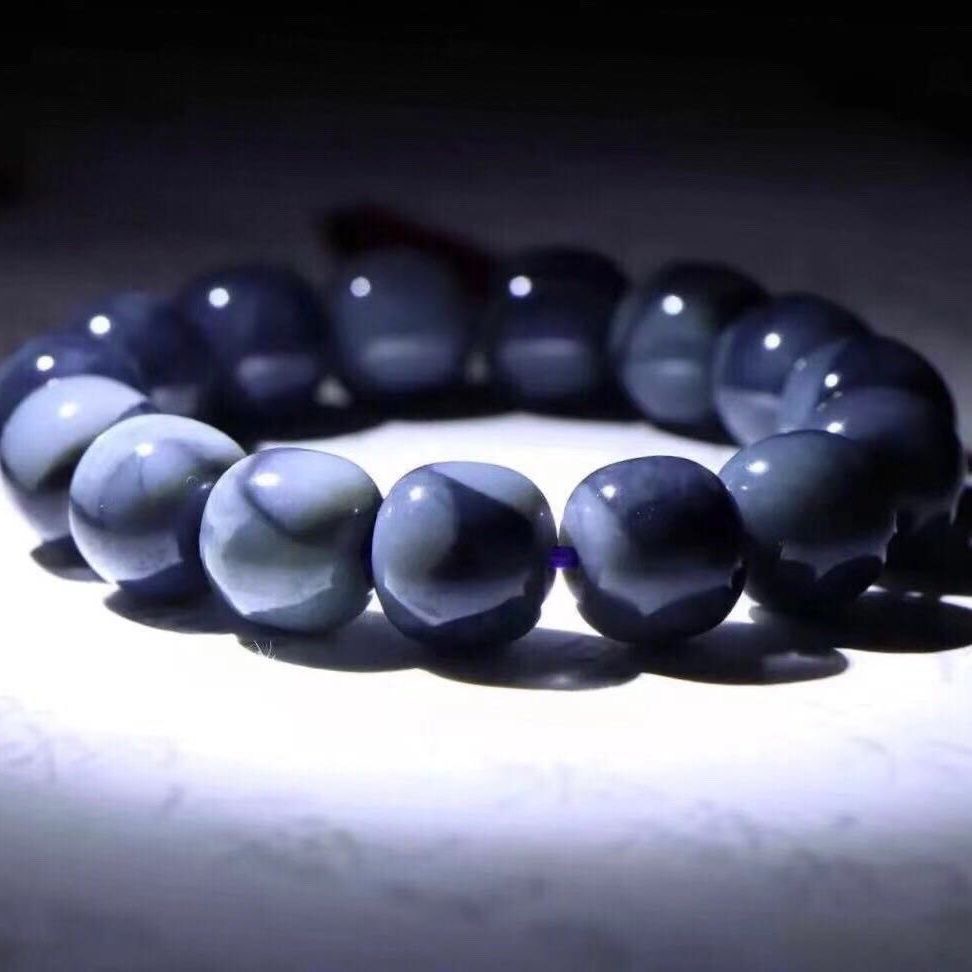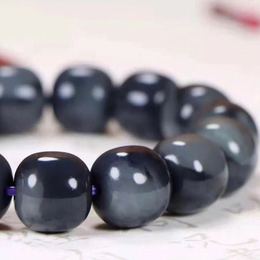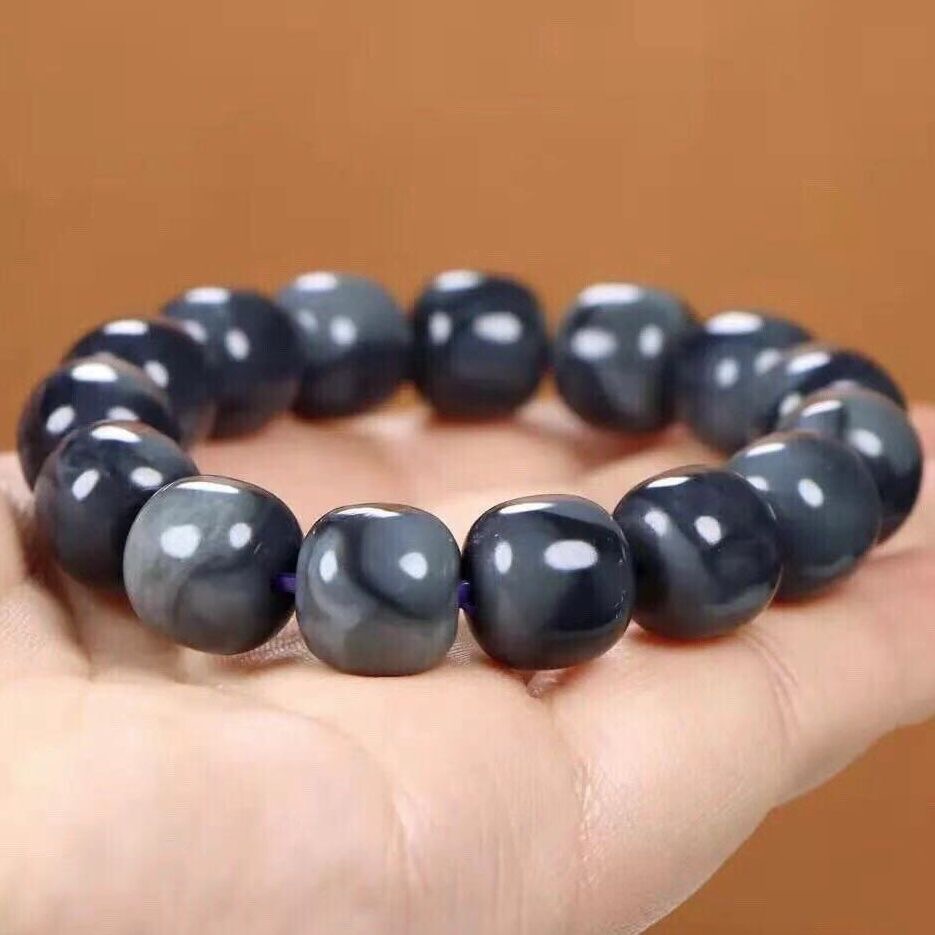新疆和田玉青花籽料手链情侣款黑白青花墨玉中国风古典老型珠手串