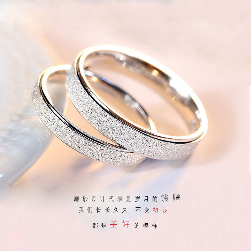 纯银闭口戒指情侣一对男女款磨砂小众设计对戒刻字520礼物送女友
