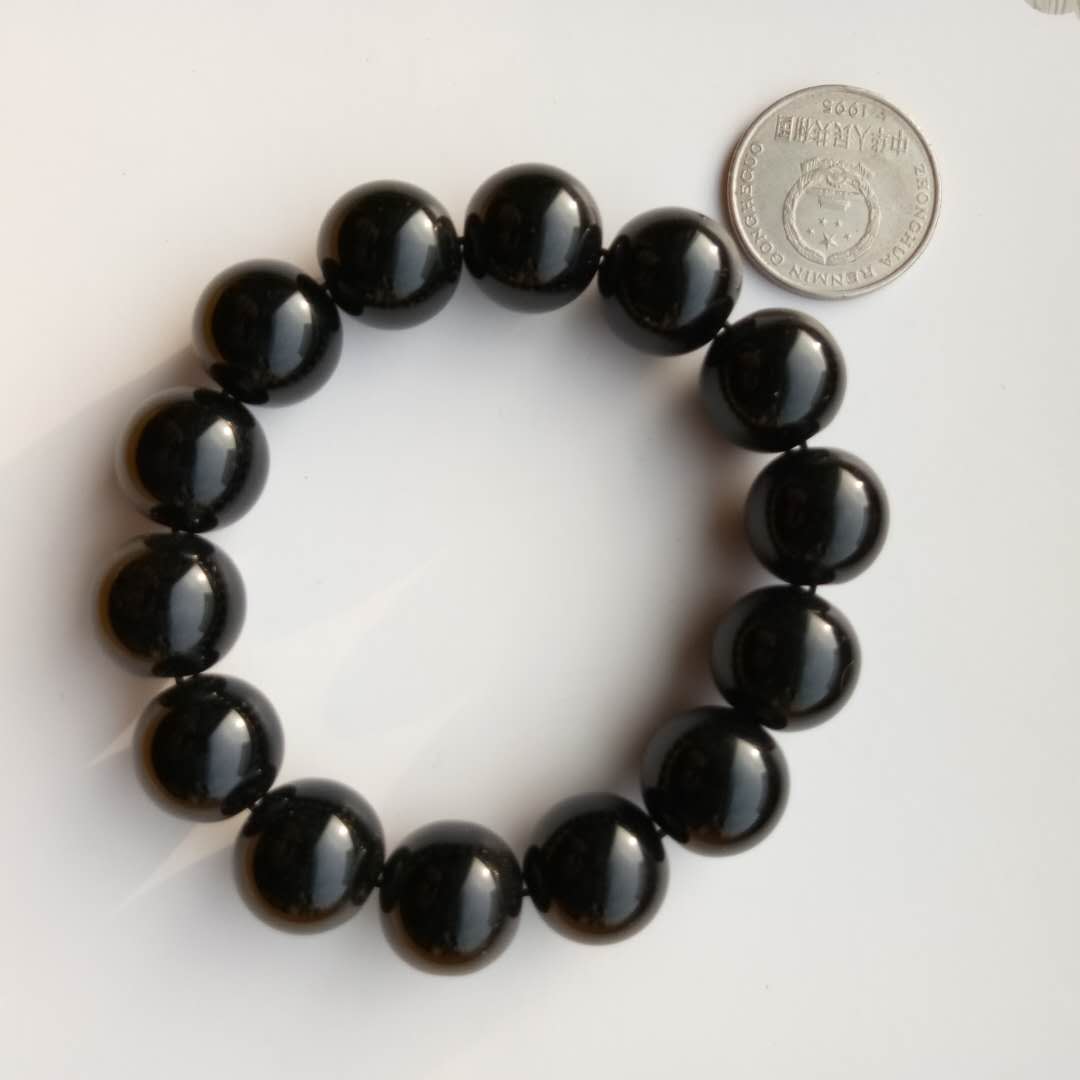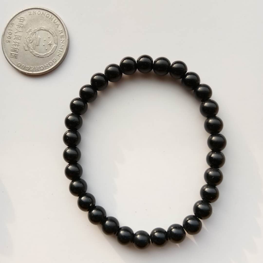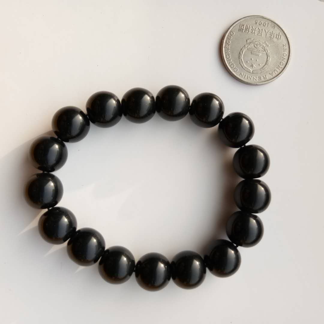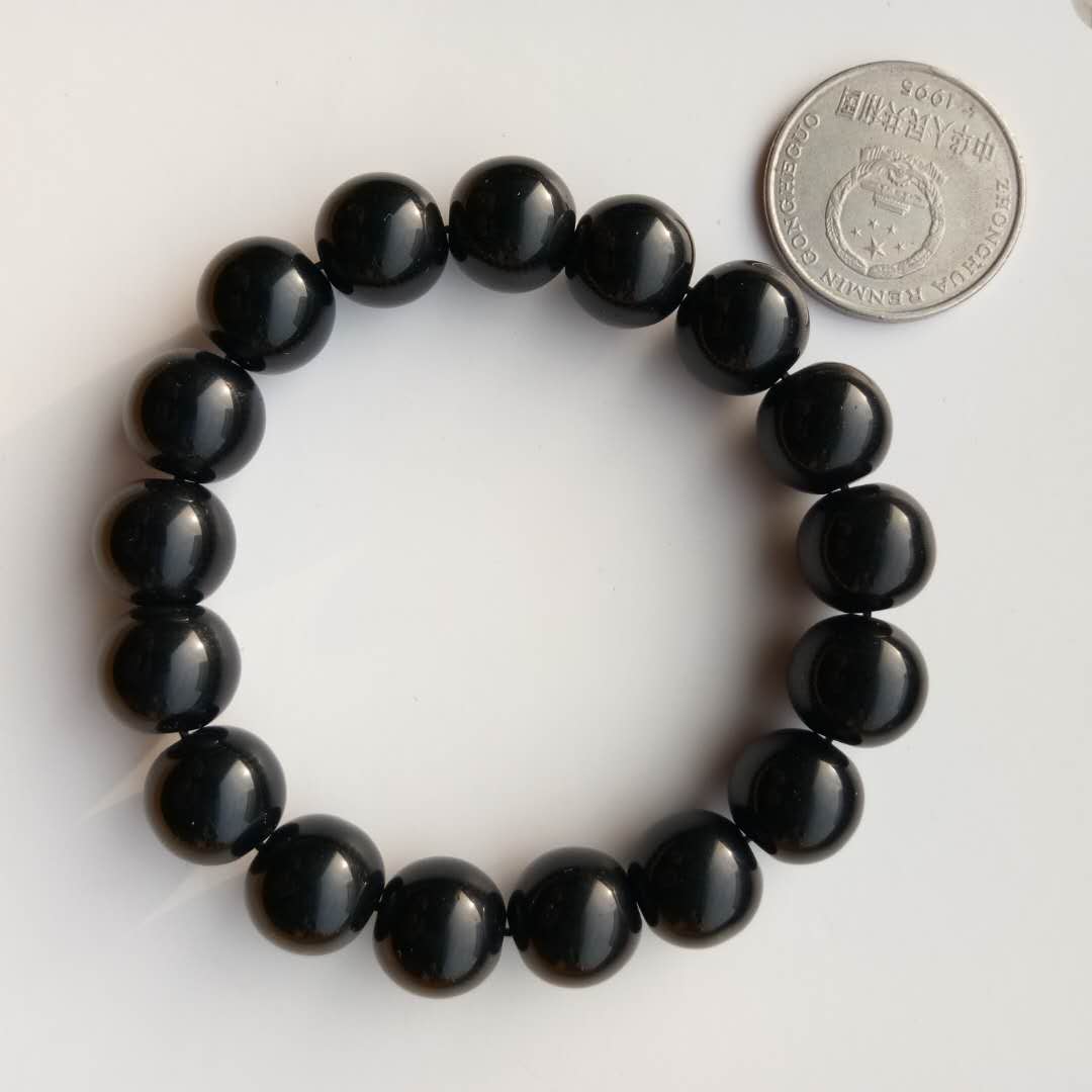 纯黑黑曜石黑玛瑙水晶饰品手链男女士款佛珠招财手串生日礼物