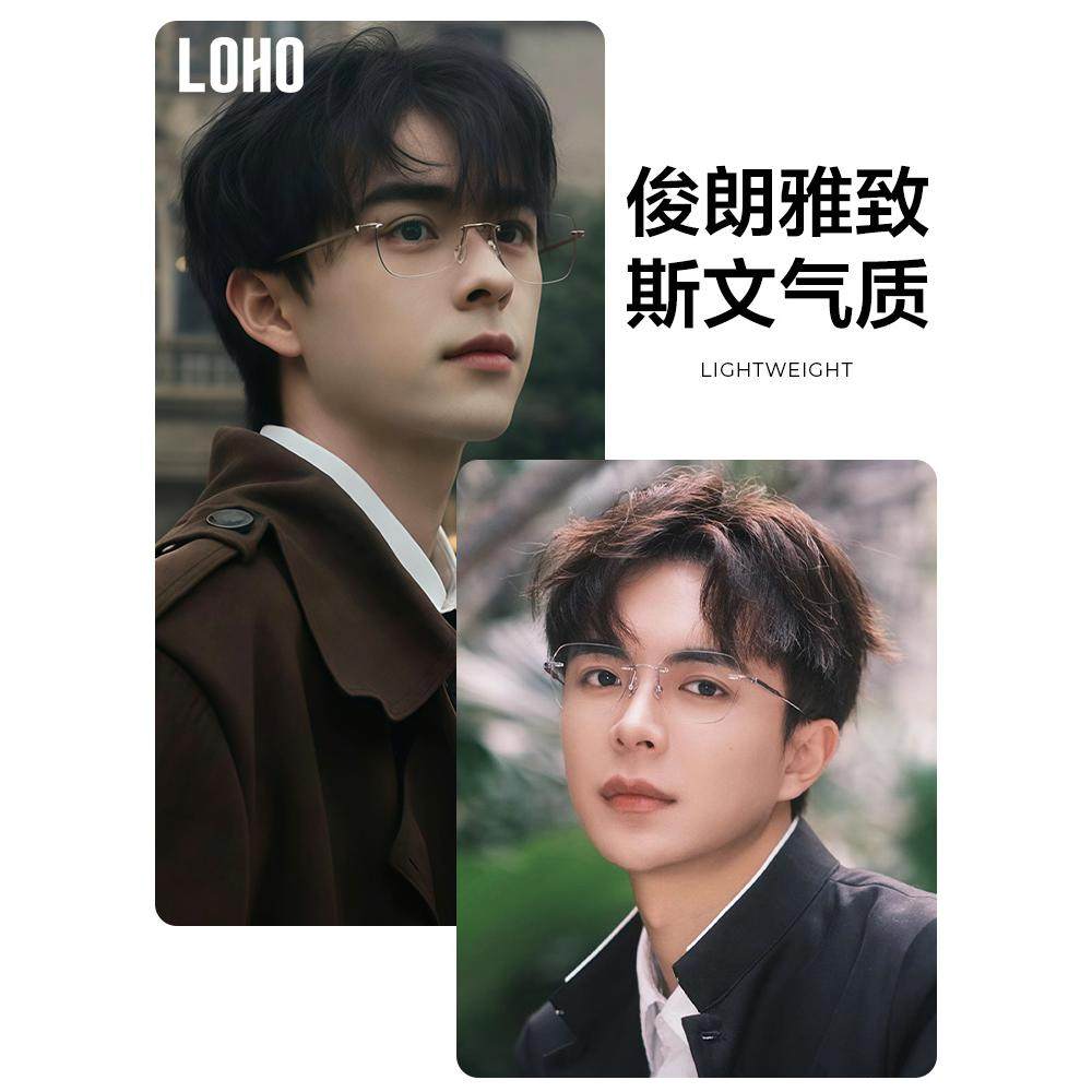 LOHO无框眼镜近视男可配度数超轻全钛无边框防蓝光眼睛框男士镜架