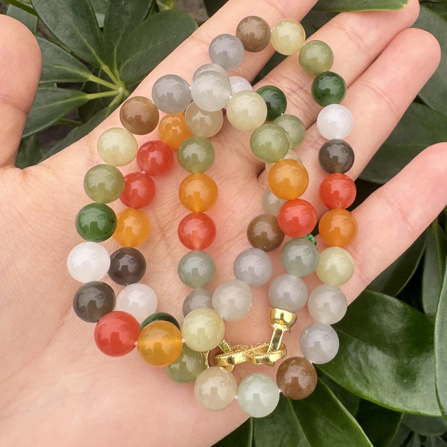 和田玉多彩多宝细腻油润卡8mm妈妈链长链Q