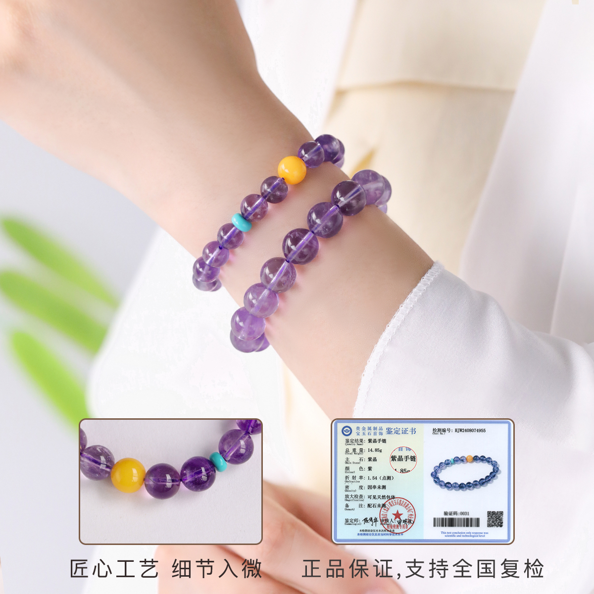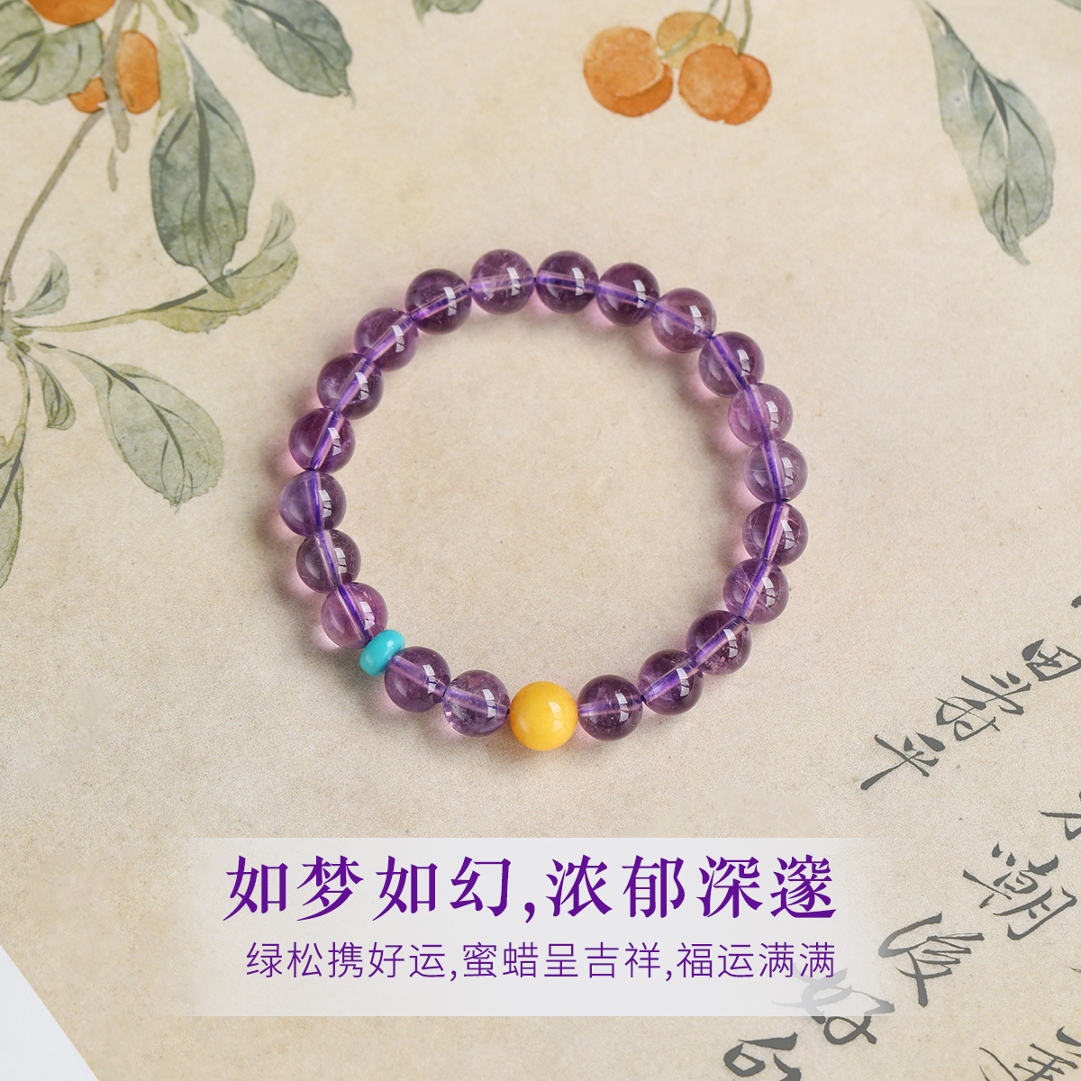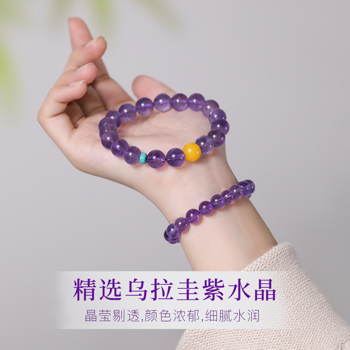 紫水晶手链女乌拉圭天然紫色水晶珠子手串九紫离火蜜蜡绿松石正品