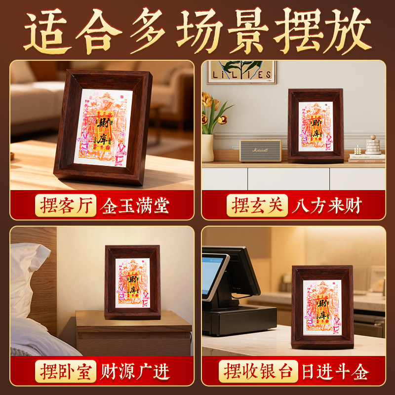 五路财神财库相框武财神赵公明招财摆件挂件开财补库客厅办公室桌