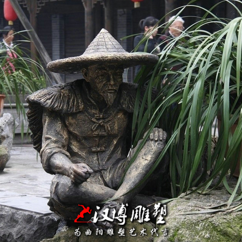 民俗文化钓鱼人物主题小品雕塑玻璃钢仿铜渔翁公园园林景观雕塑