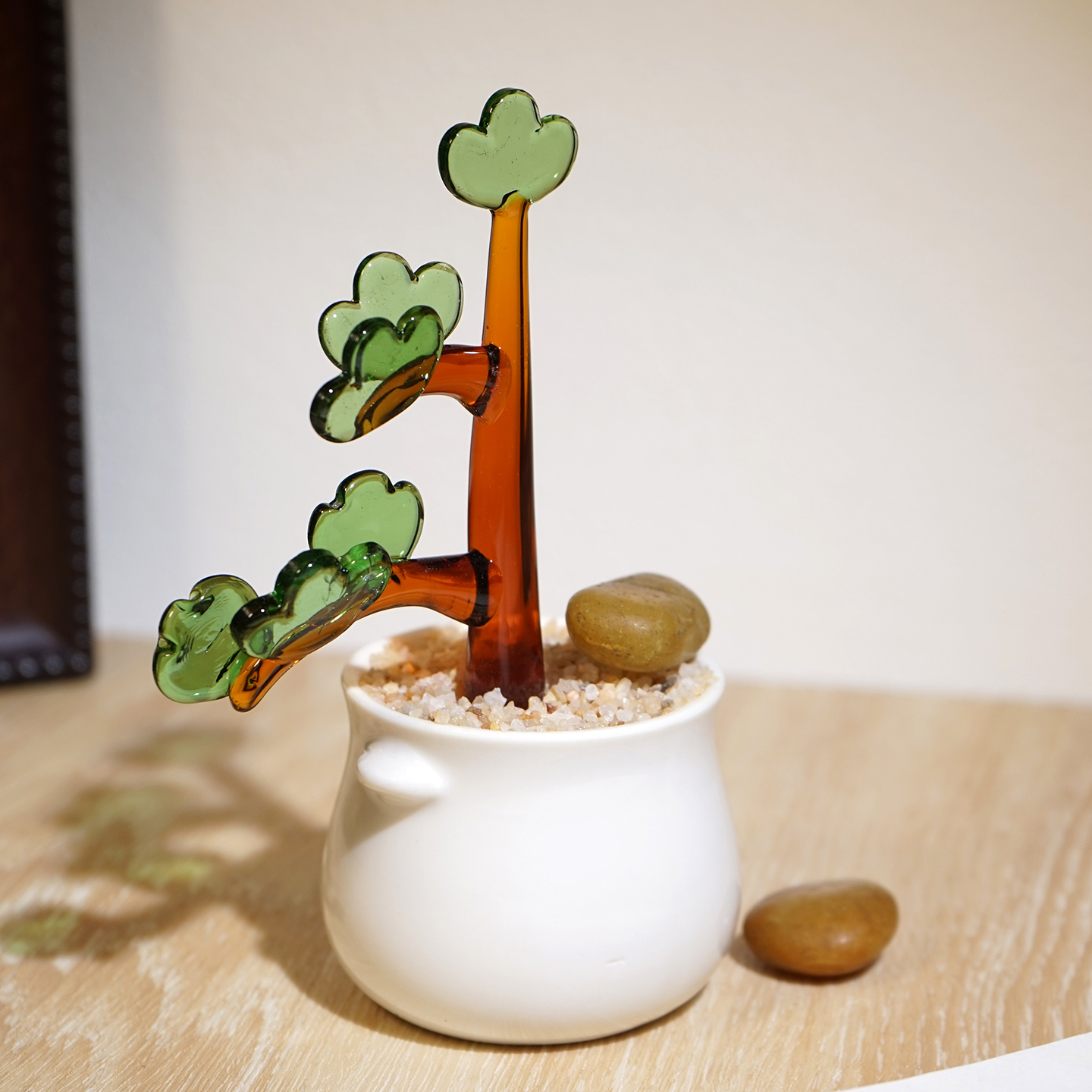 迎客松盆栽手工琉璃小摆件玻璃创意植物电脑桌面工位装饰品礼物
