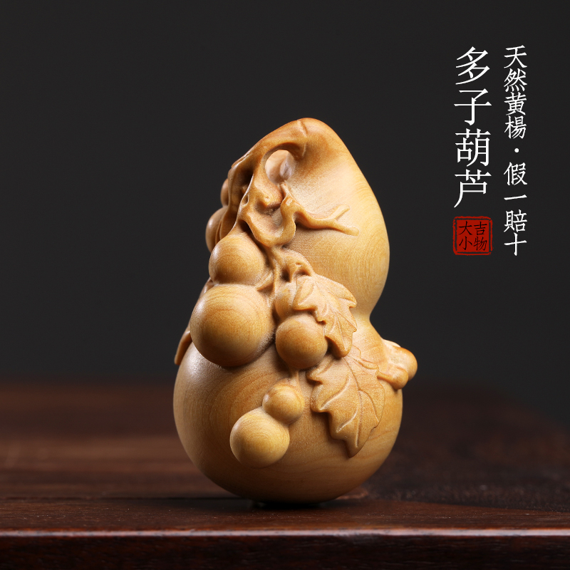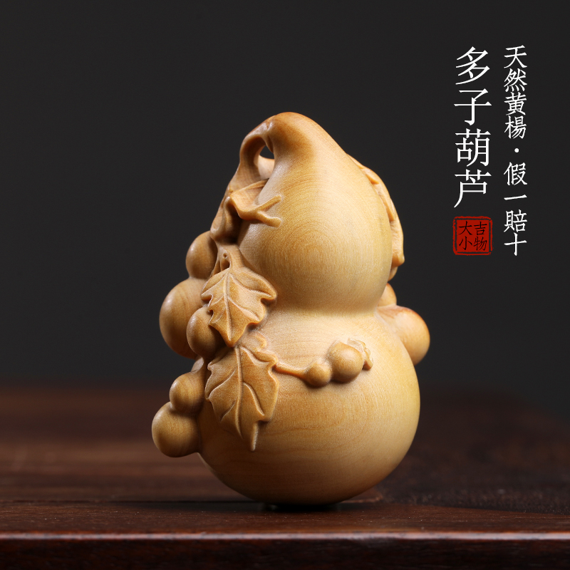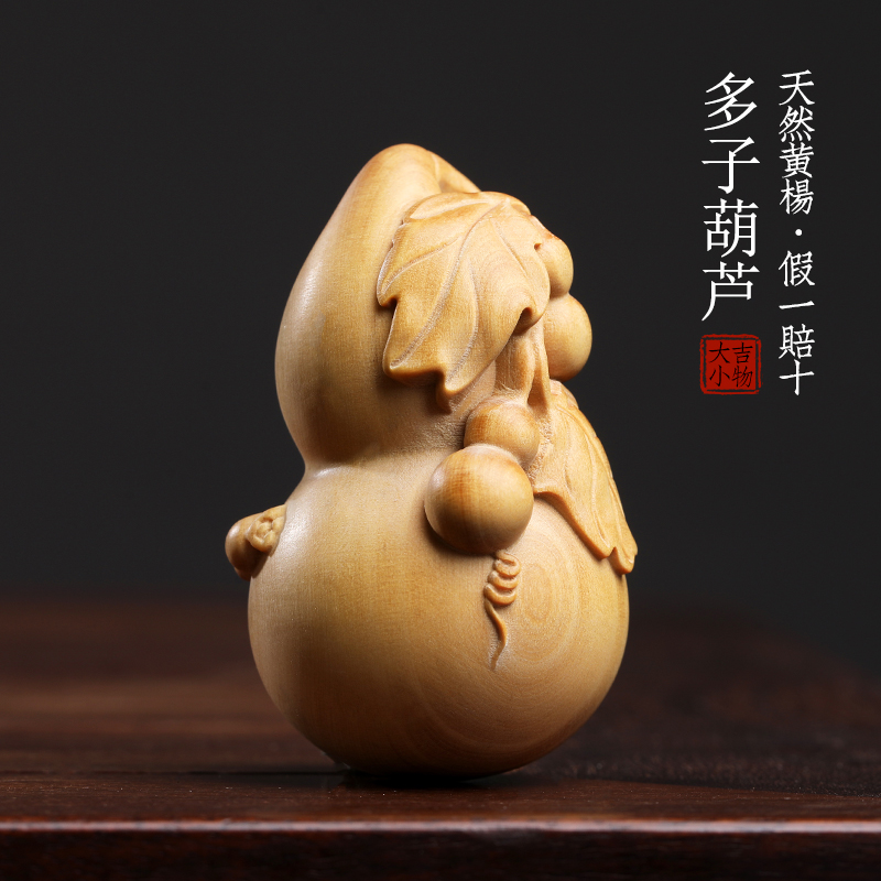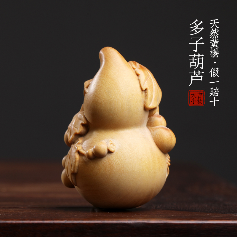 天然小叶黄杨木雕多子葫芦实木雕刻福禄文玩手把件葫芦钥匙扣挂件
