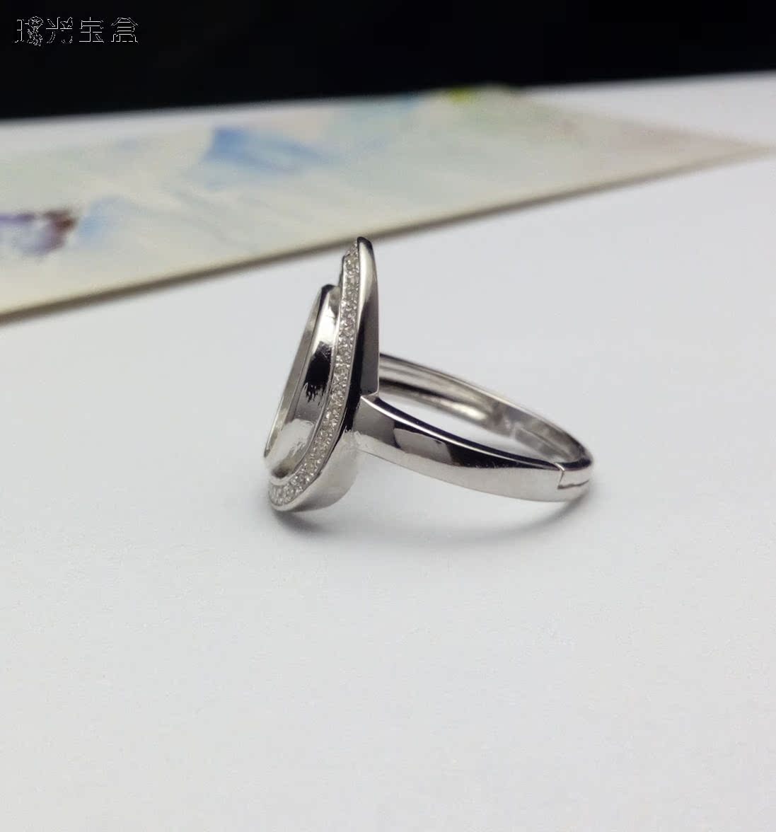 S925纯银镀白金镶水钻 时尚款 活口 女款 戒指托 空托 9*11