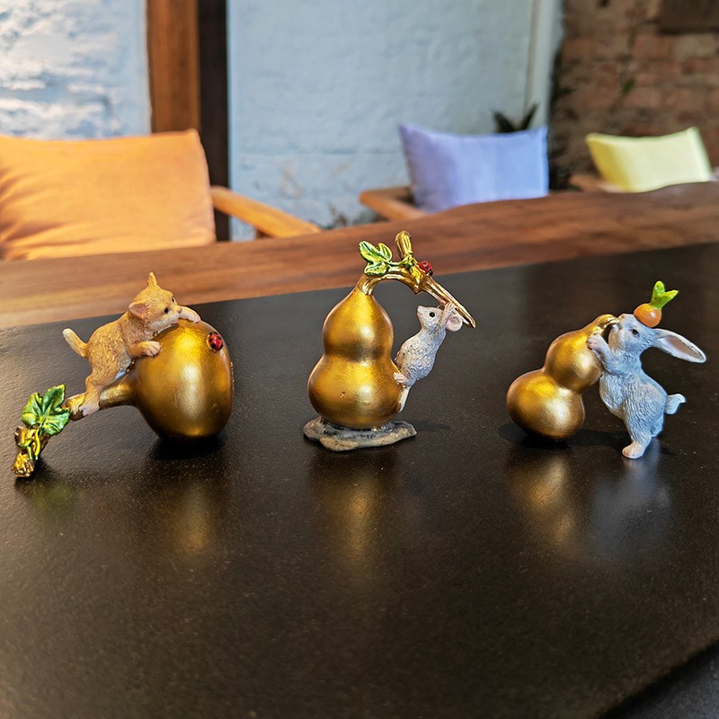 创意福禄葫芦摆件鼠你有福扬眉兔气中式桌面办公装饰工艺品送礼物