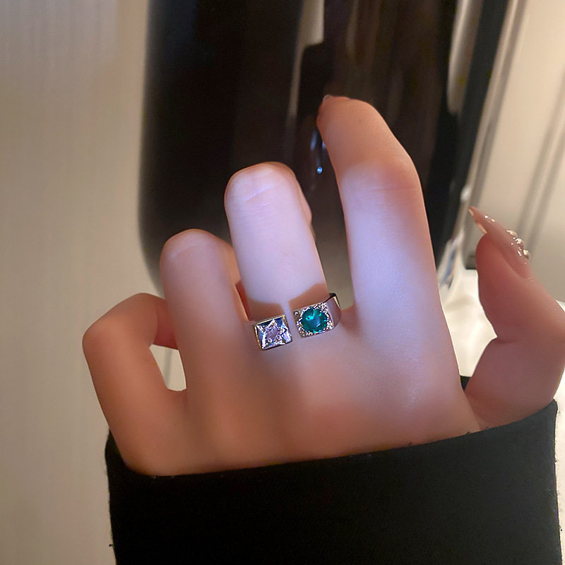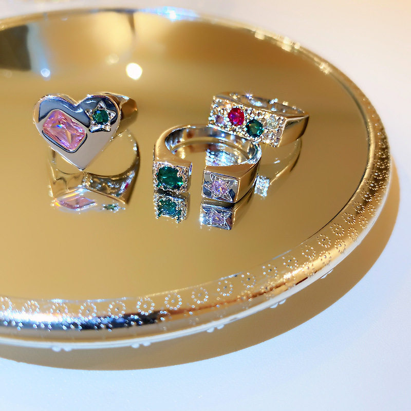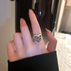韩版个性爱心微镶彩色锆石戒指女复古宫廷风法式开口食指环