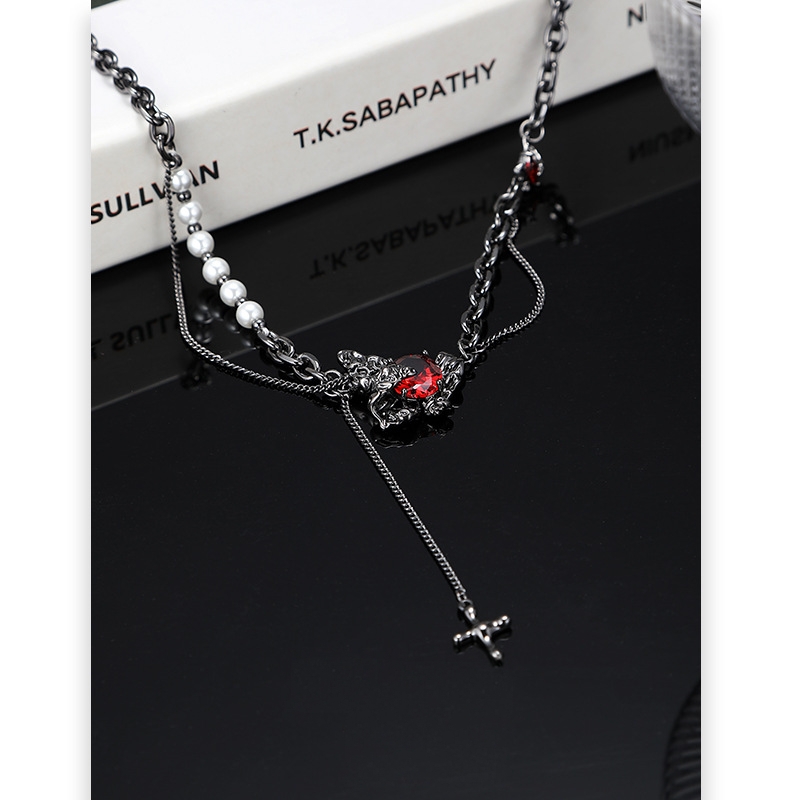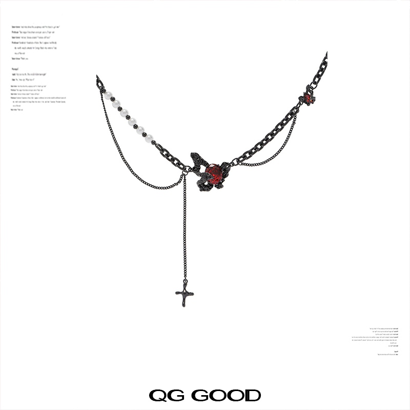 节日礼物原创镂空蝴蝶红色锆石项链女复古精致气质高级感小众配饰