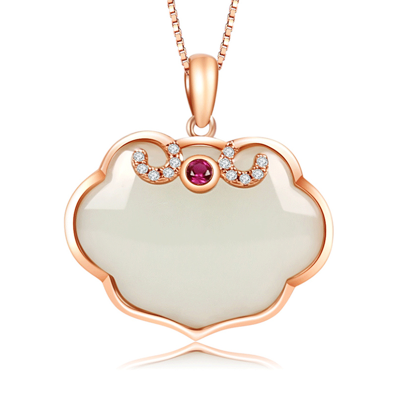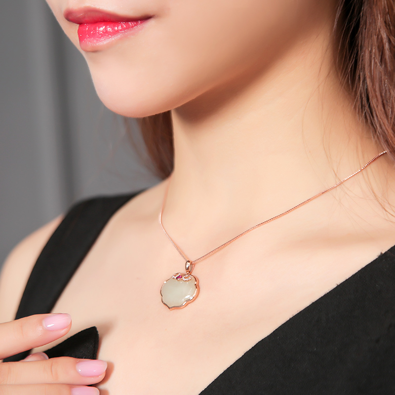 如意和田玉吊坠女款项链饰品925纯银玫瑰金镶玉佩挂件情人节礼物