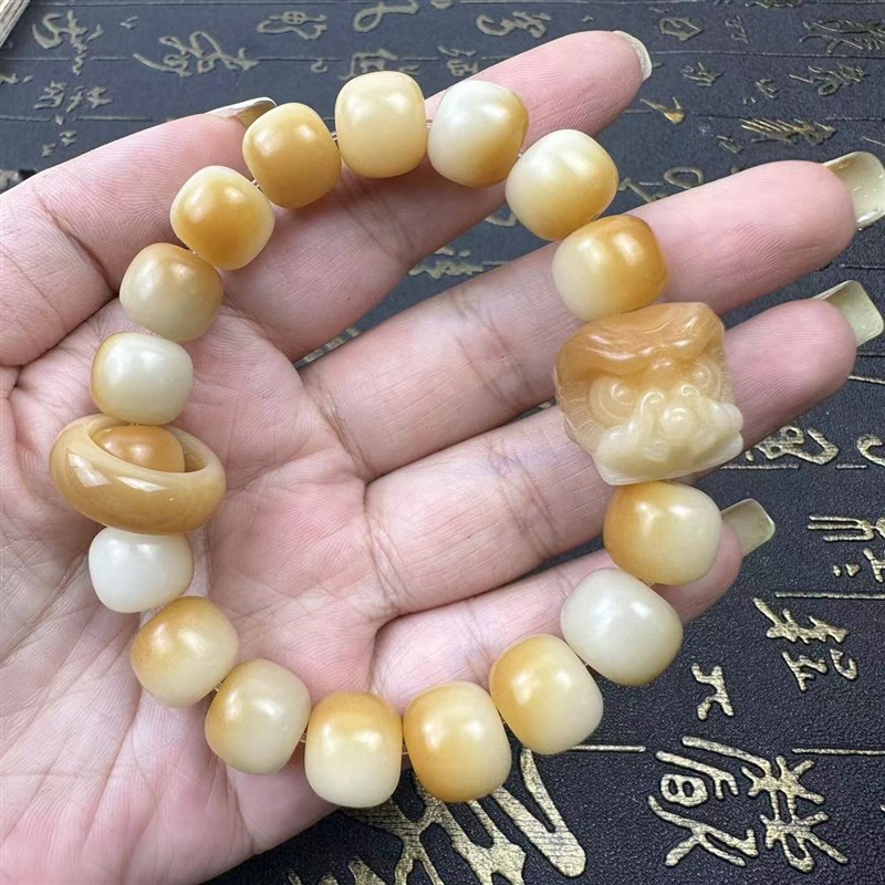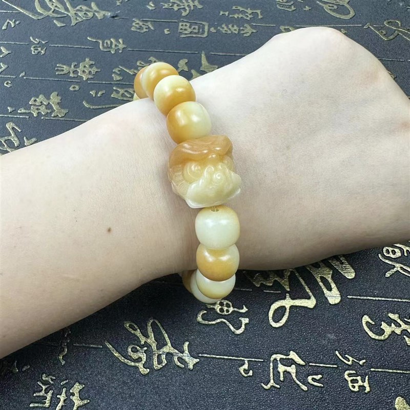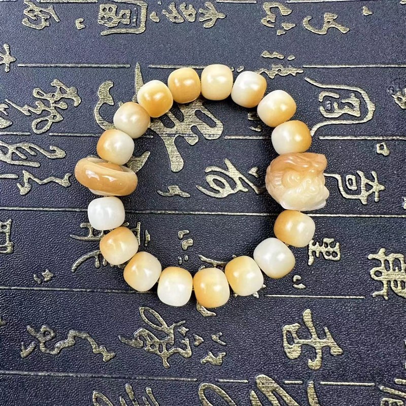 现货速发新款白玉炭烧菩提根手串双圈醒狮跑环菩提子手链男文玩念