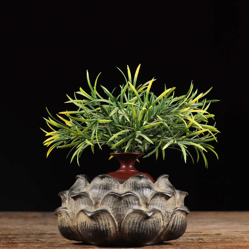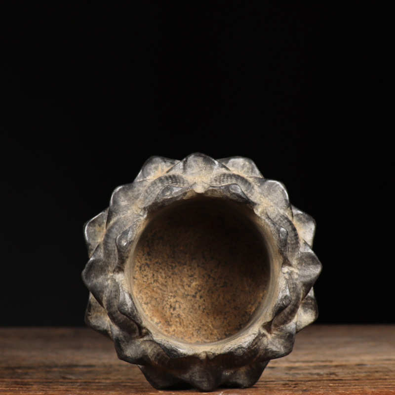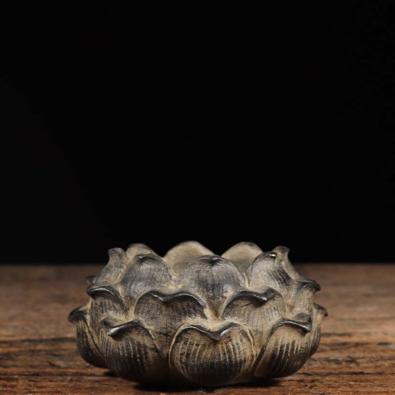 仿古石雕青石 莲花石钵石盆烟灰缸 中式复古陈设文玩收藏摆件摆饰