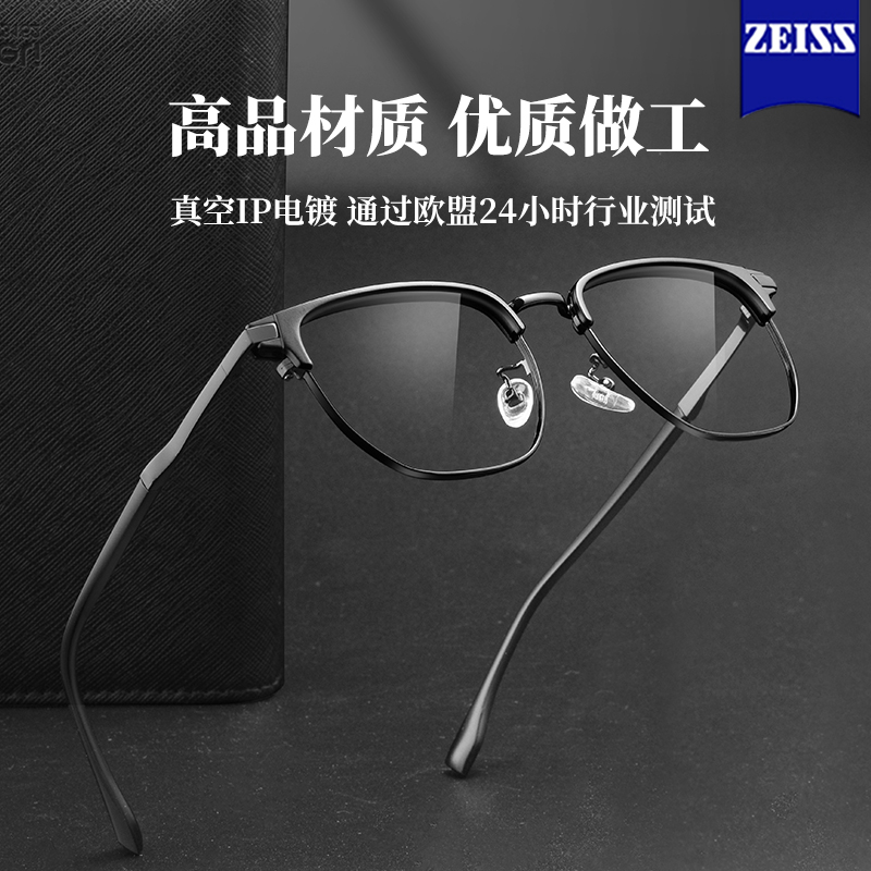斯文半框理工男近视眼镜网上可配度数大脸眼睛框平光防蓝光眼镜框