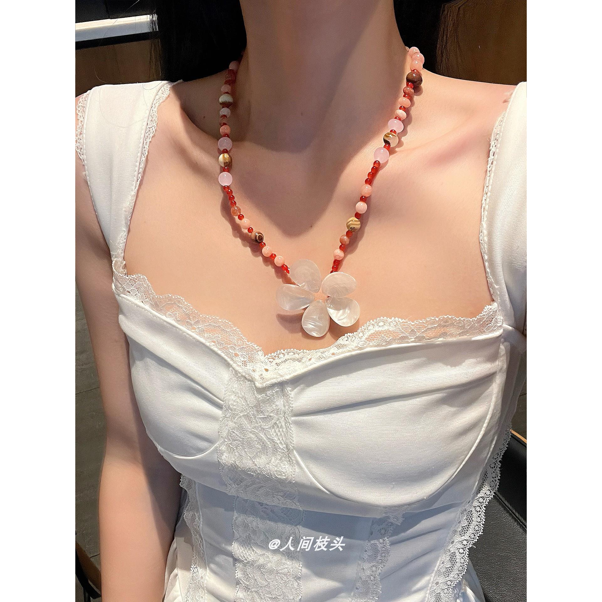 波西米民族风亚贝壳花朵串珠项链女新爆款轻奢小众高级感锁骨颈链
