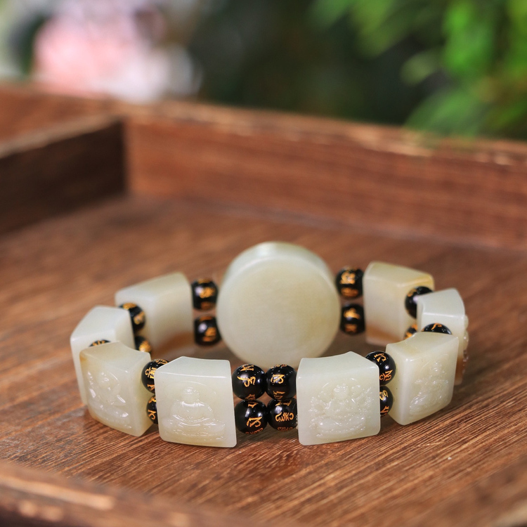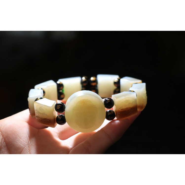 天然新疆和田玉羊脂玉飘糖八大守护手串手链古风男女手饰收藏礼品