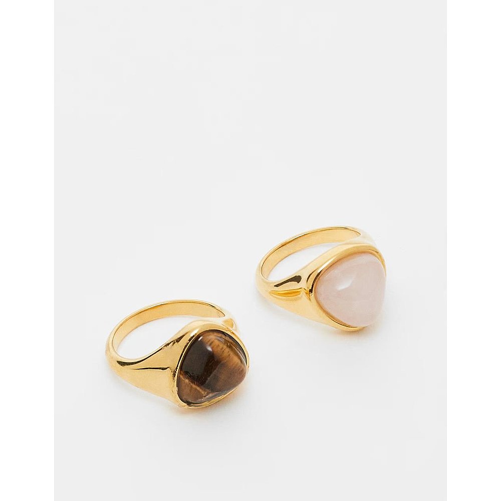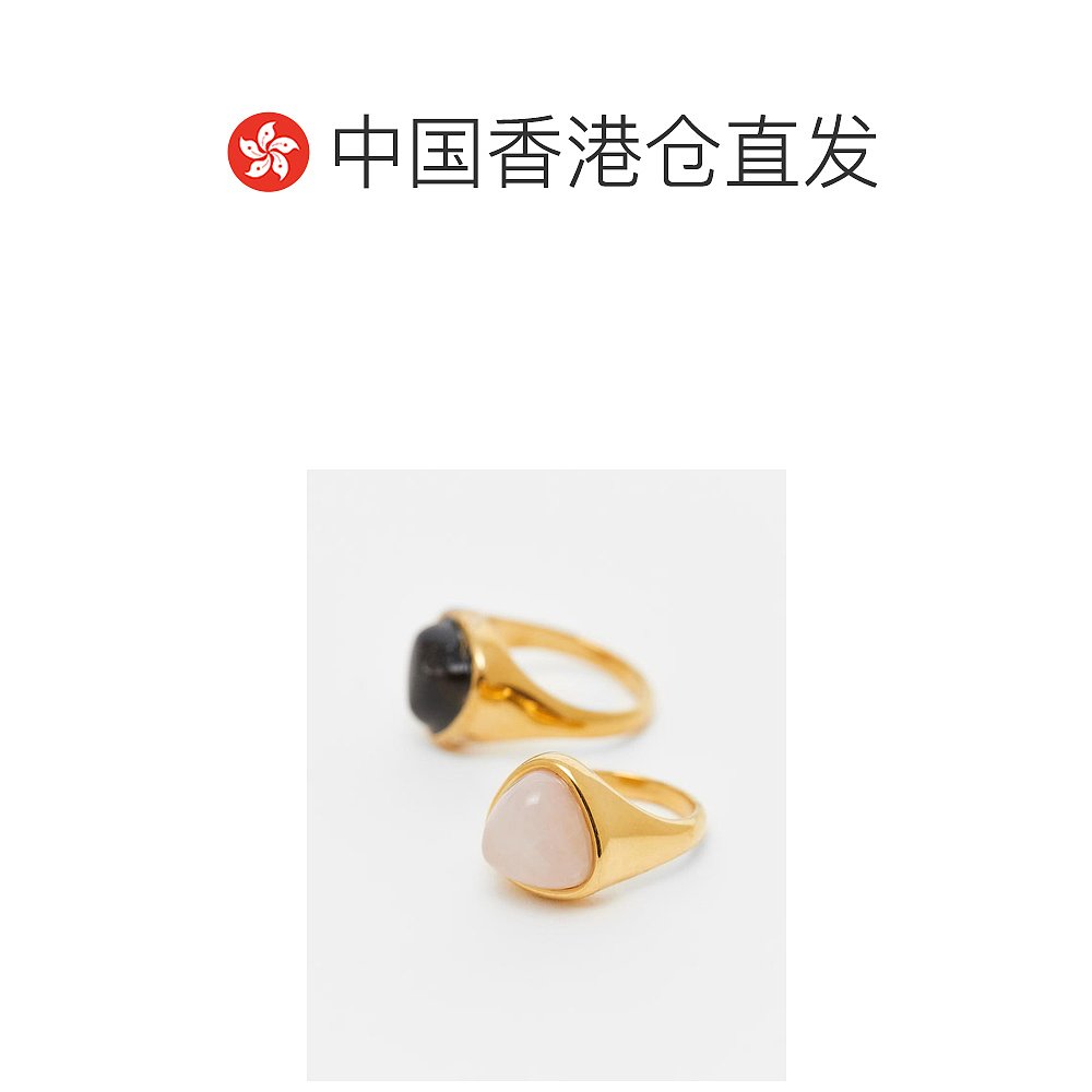 香港直邮ASOS 女士 real 设计不锈钢半珍贵晶石镶嵌色调戒指(2件)